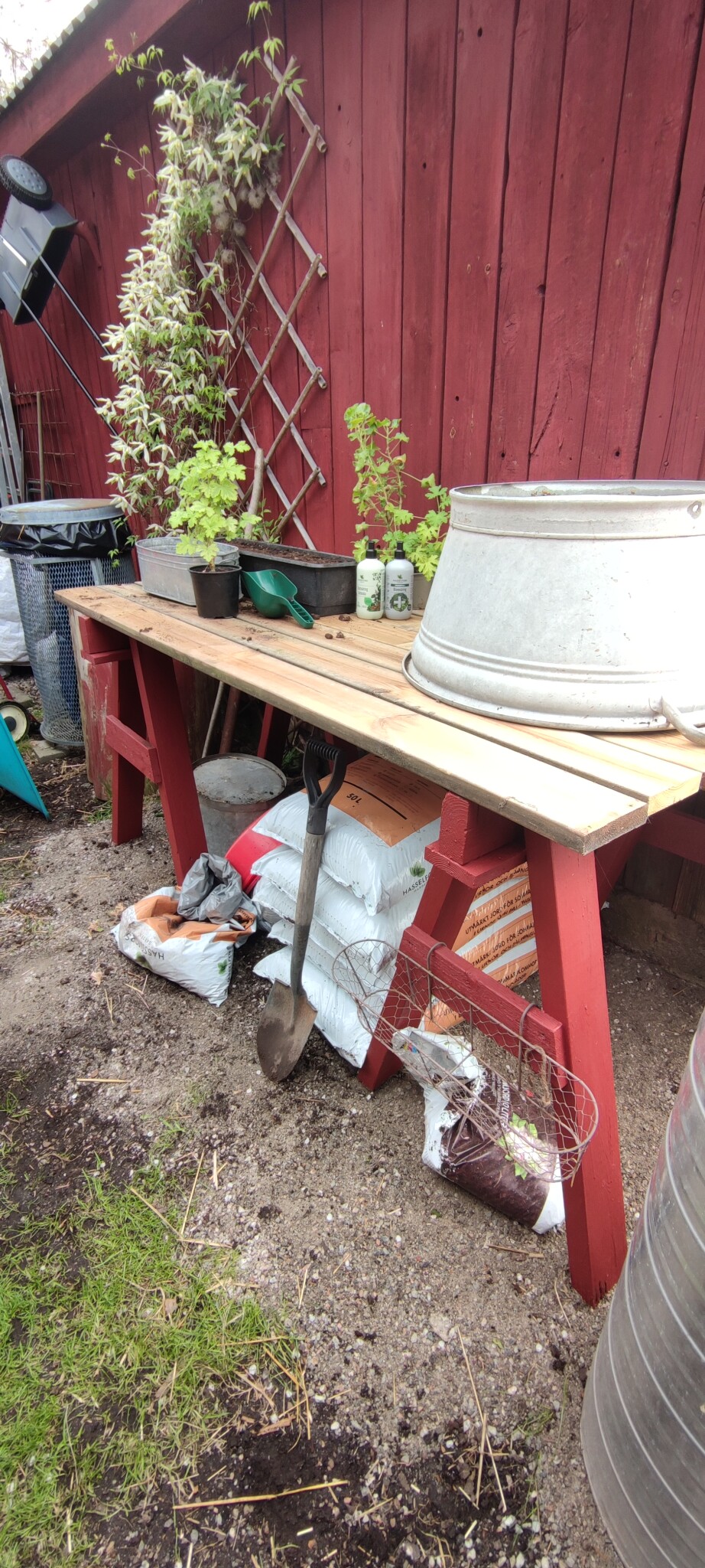 Mannen byggde mig ett planterings av grannens byggsopor så nu har jag gott om plats för allt.