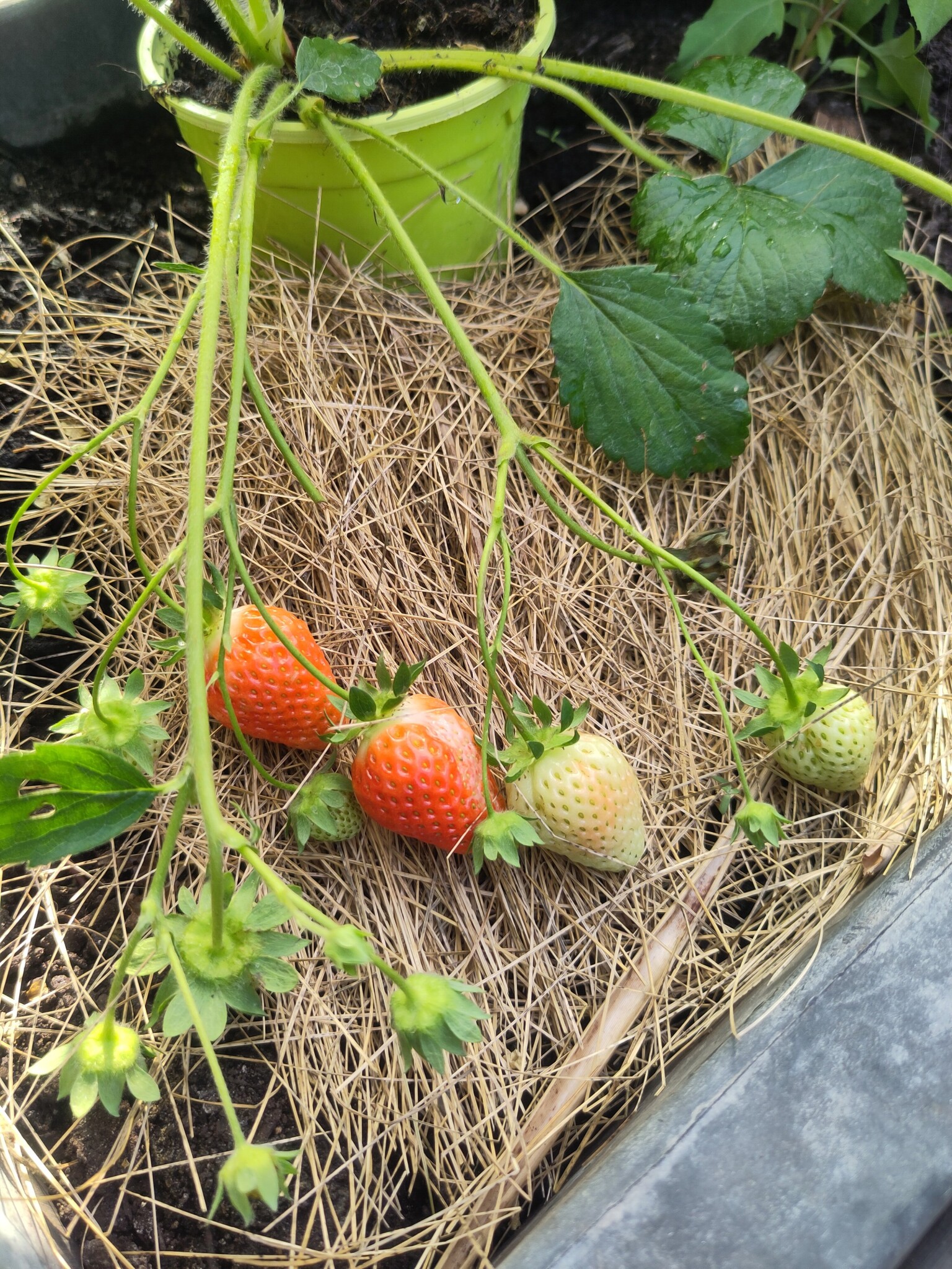 Här börjar vi så sakta få jordgubbar, barnen har redan slukat de första två.