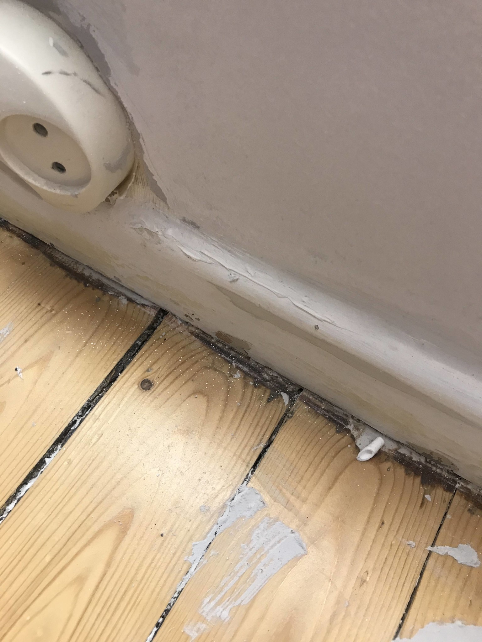 Haft målare som har spacklat tapetserade väggar och fogat efteråt. De behöver lite mer fig på vissa ställen. Men även där det endast varit putsad vägg innan och bred list har listen suddats ut. Och fogen har väldigt dålig finish. Blir det verkligen så här efteråt? Se bilder.