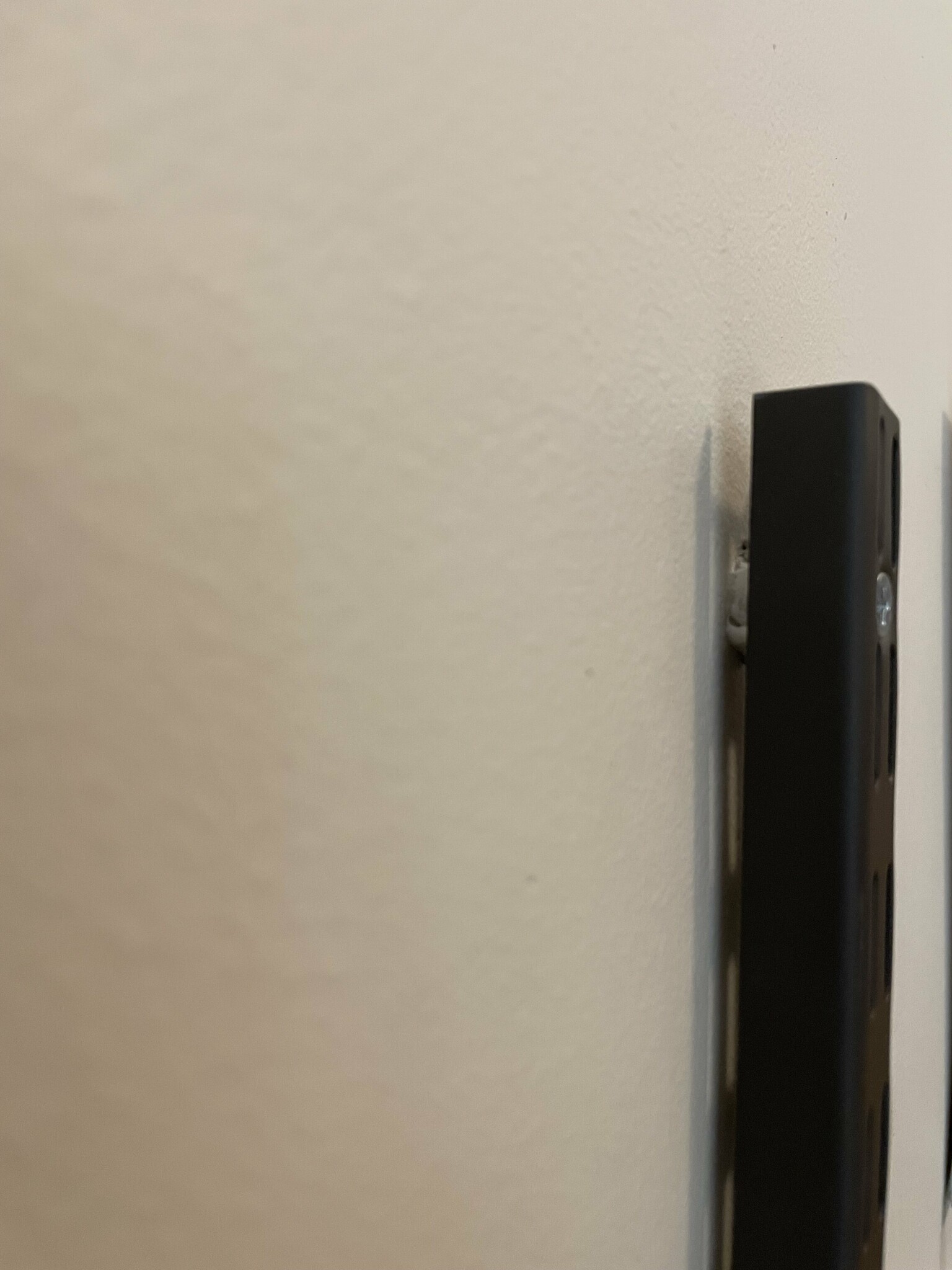 När jag skulle dra i sista skruven så märker jag att skenan stå ut en bit från väggen för att väggen är ojämn. Så skruven fäster inte ordentligt. Också så att just det hålet blev lite stort och jag tog i PL400, så skriv och plugg rör sig. Vad bör jag göra nu? Bara låta det vara och anta att resterande fem skruvar och plugg håller eller åtgärda det sista hålet på något vis?