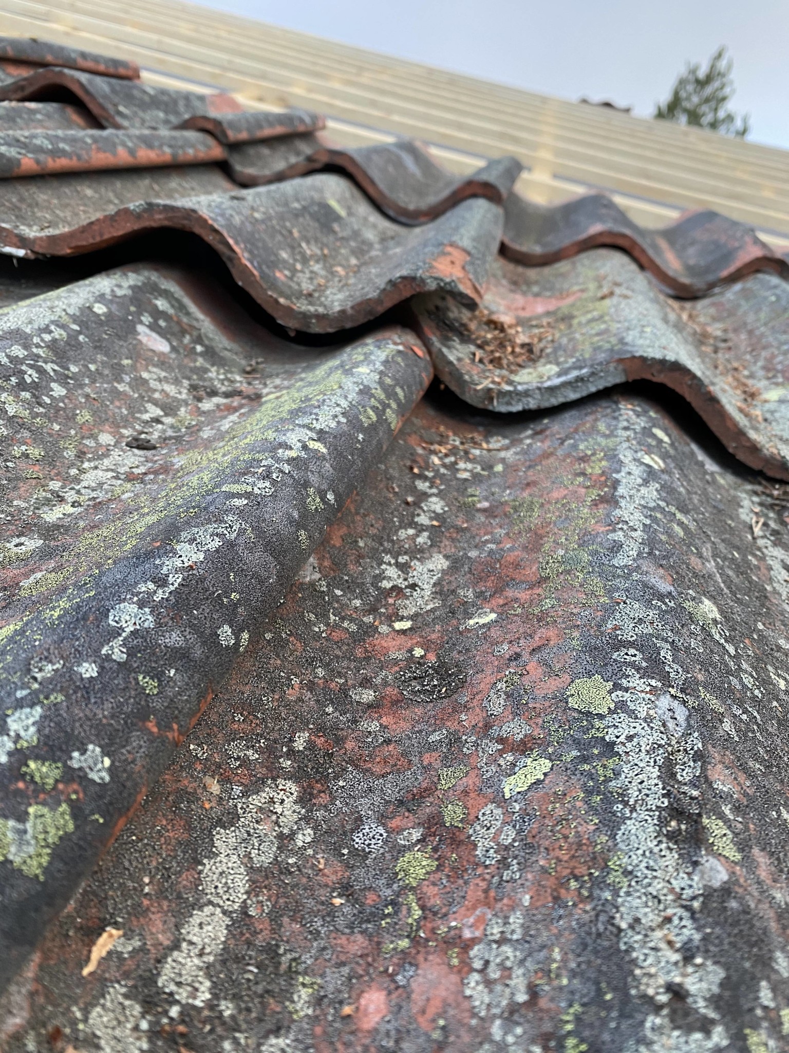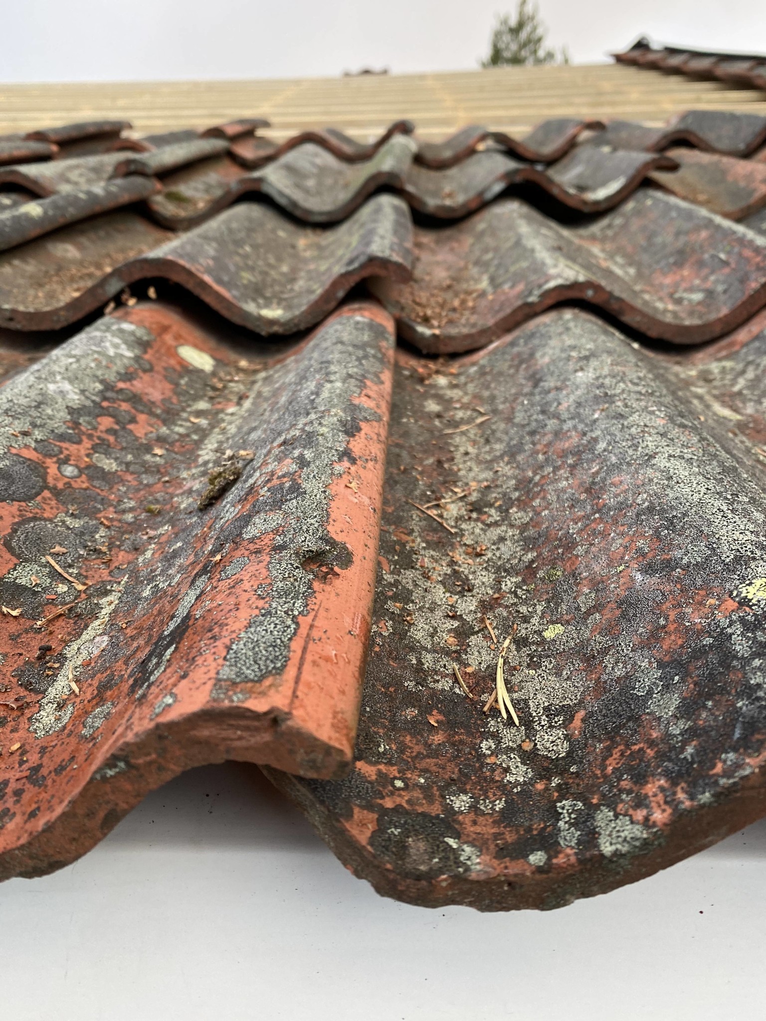Har precis bytt råspont, duk och läkt på vårt 40- tals hus. Började lägga på tegelpannorna men insåg snabbt att de som byggde huset köpt andrasortering eller lappat med olika årgångar av tegel. Jag har inget emot att taket ser lite äldre och inte helt perfekt ut, men finns det några nackdelar med att det inte ligger helt jämt och spikrakt. Bifogar lite bilder: