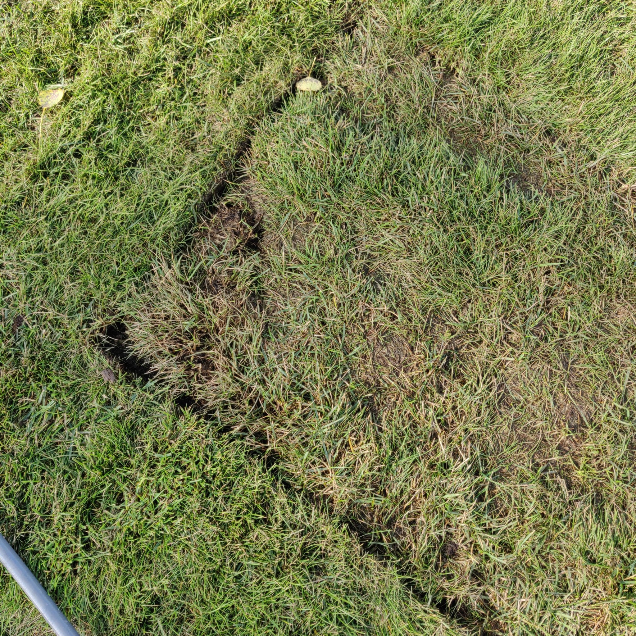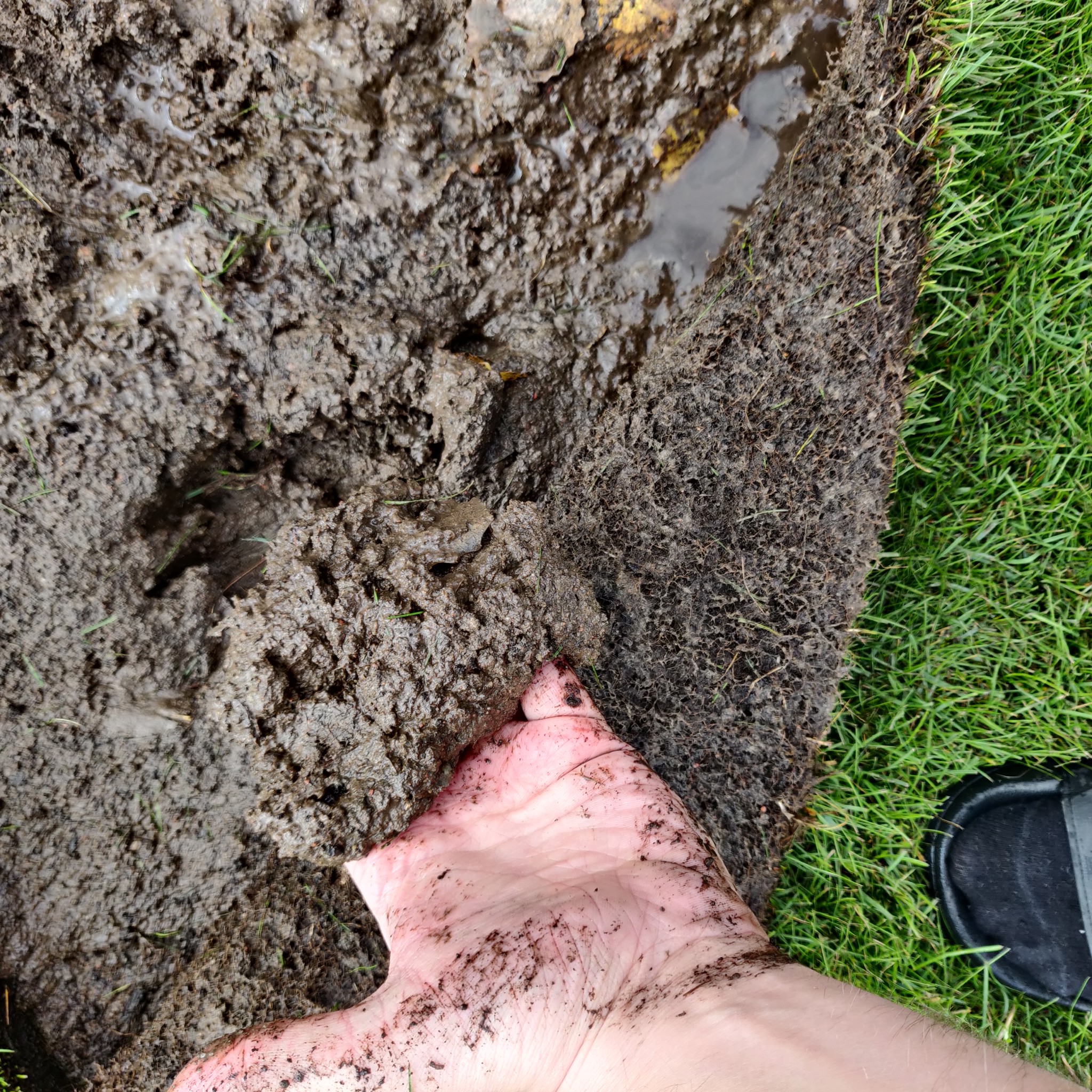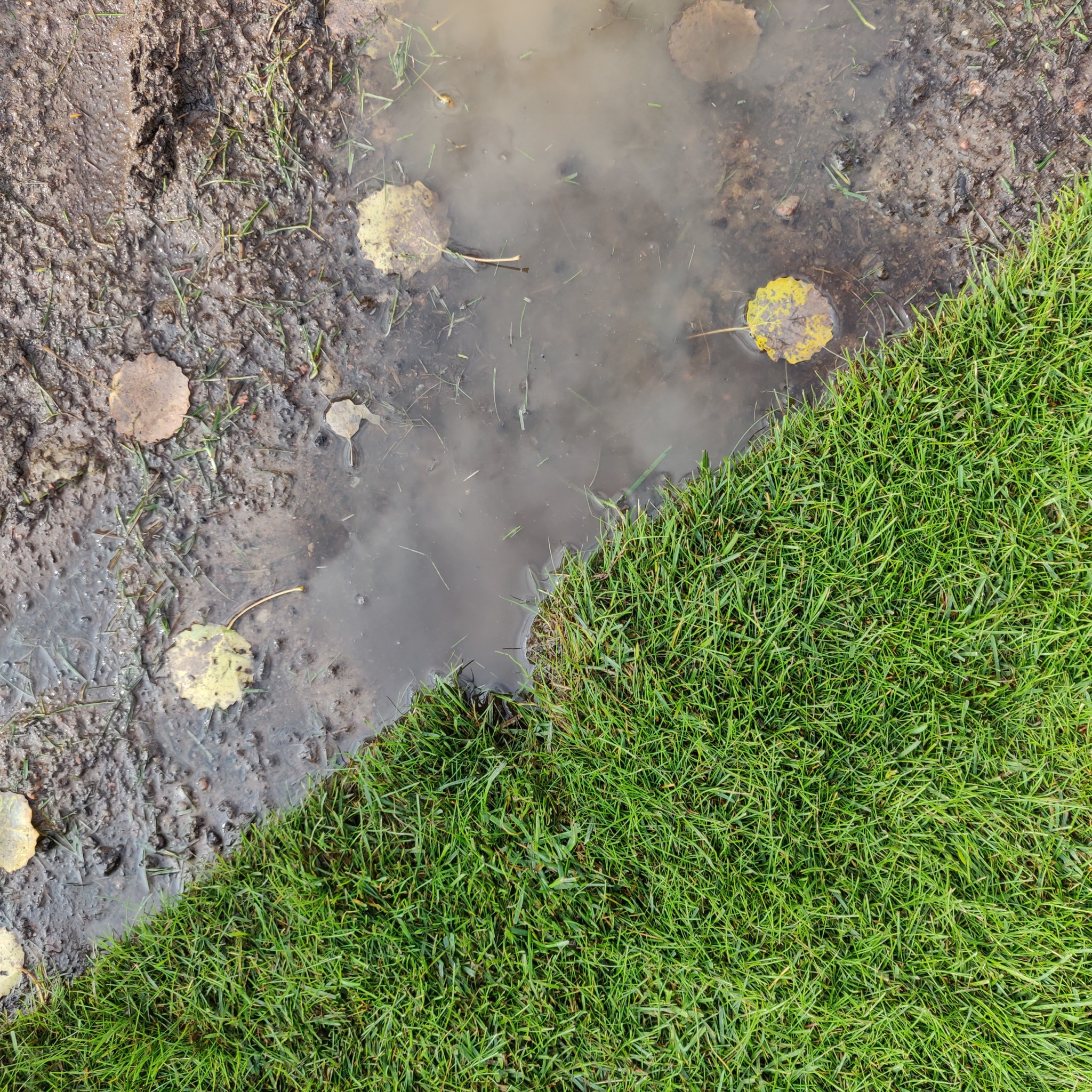 I början av sommaren flyttade vi ni in i ett nybyggt radhus. I måndags fick vi äntligen rullgräs. Problemet är att efter första vattningen blev underlaget väldigt mjukt på vissa ställen. När jag gått ut för att flytta vattenspridaren sjunker man ner och det blir gropar i gräsmattan. Ser nästan ut som ett litet minislagfält på vissa ställen. Lyfter man på mattan är det nästan lera under (men bara på vissa ställen)