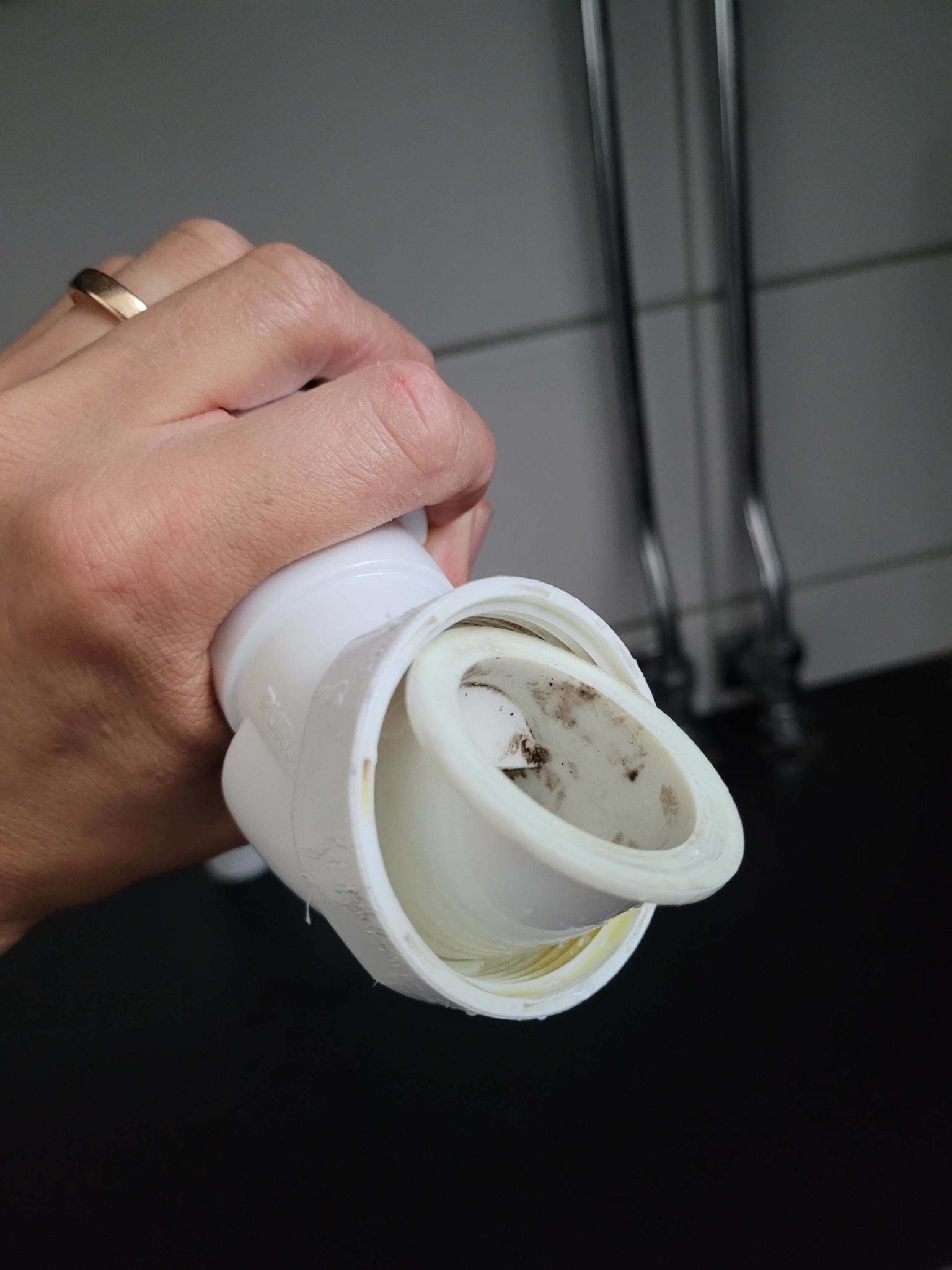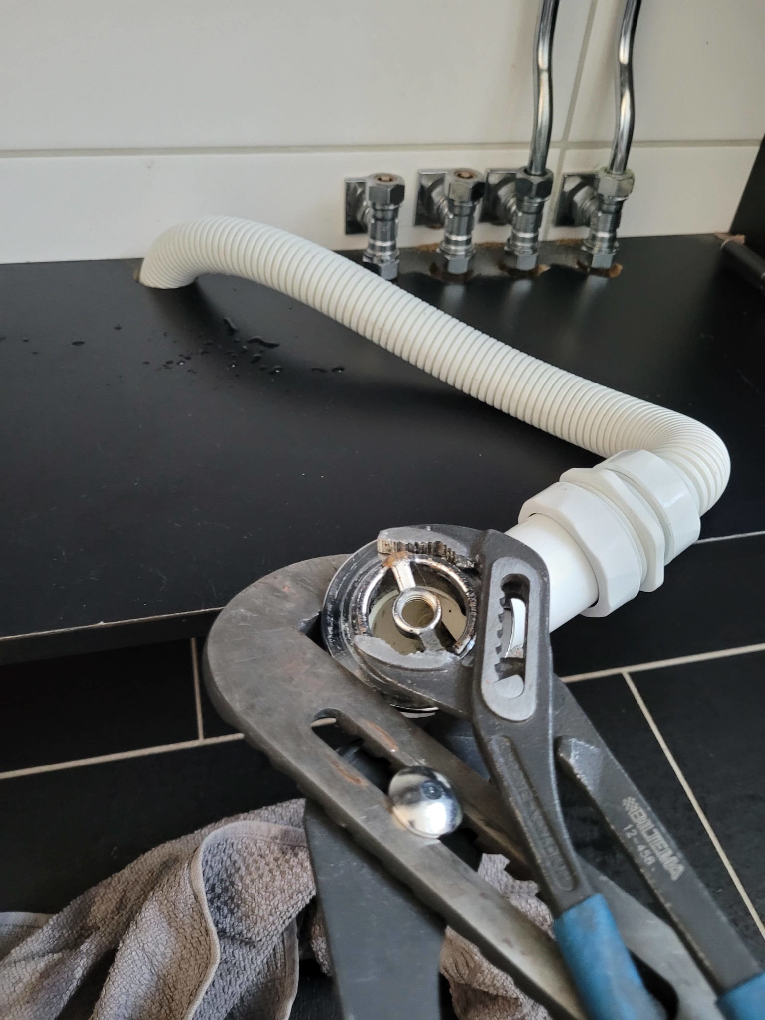 Efter några försök så låste den sig helt. Får inte av den igen, med handkraft eller polygriptång. Men å andra sidan, den var aldrig problemet utan det är ju under den vattnet kommer ut.