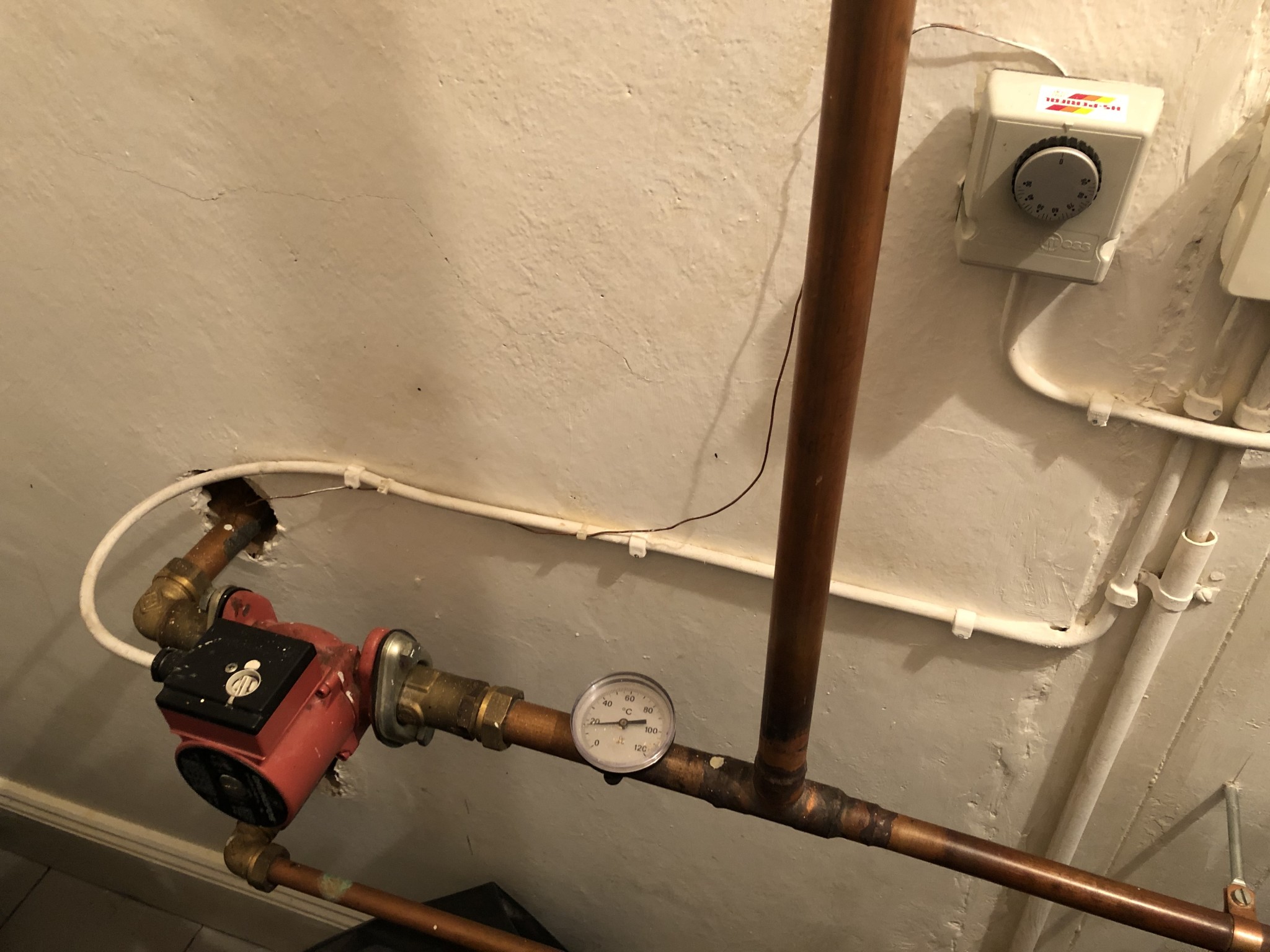 En störande detalj är att termostaten som ska starta cirkulationspumpen vid en viss temp strular. Den kickar igång vid inställd temp, men ger sig igen efter en liten stund. Skruvar jag då ner den några ett tiotal grader så startar den igen - och stänger sedan av igen på samma sätt. Så kan jag hålla på tills den är nere på noll, och DÅ kör det konstant. Så just nu är det on/off på strömbrytaren bredvid vilket känns som onödig handpåläggning och passning av temp. Så det måste åtgärdas!