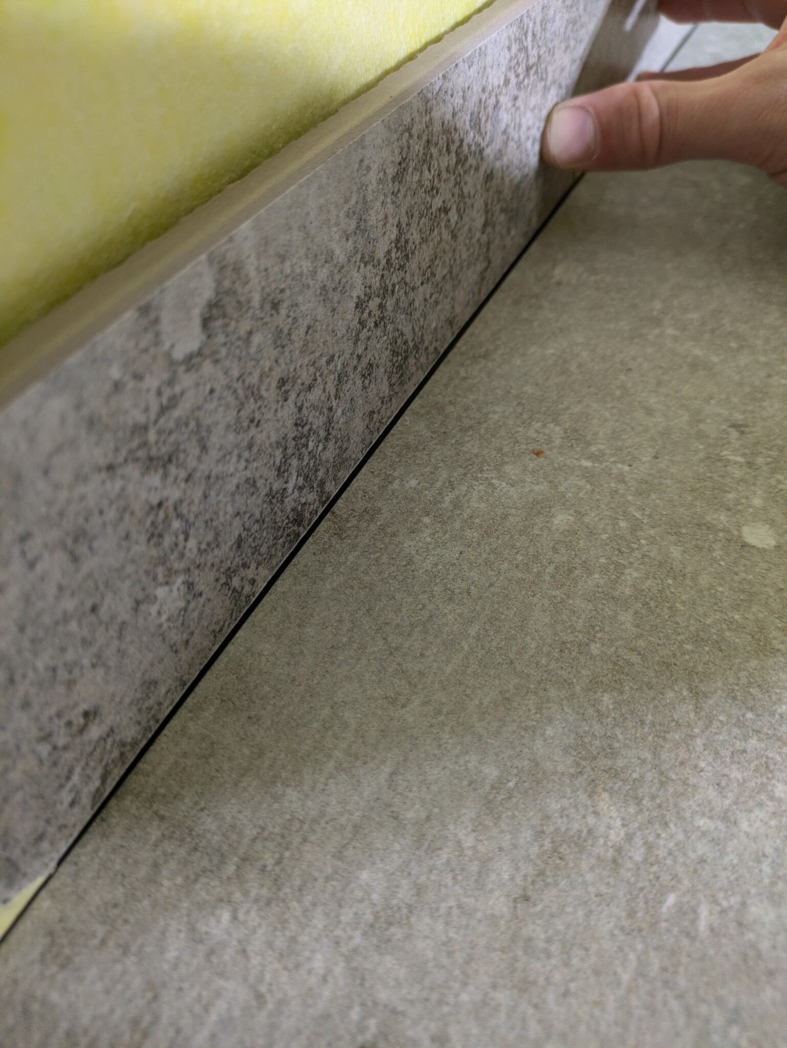 Sockelbitarna med "simulerad" fix bakom sig bygger så pass att man får en springa på ca 2 mm mellan klinkersplatta och sockellist.
