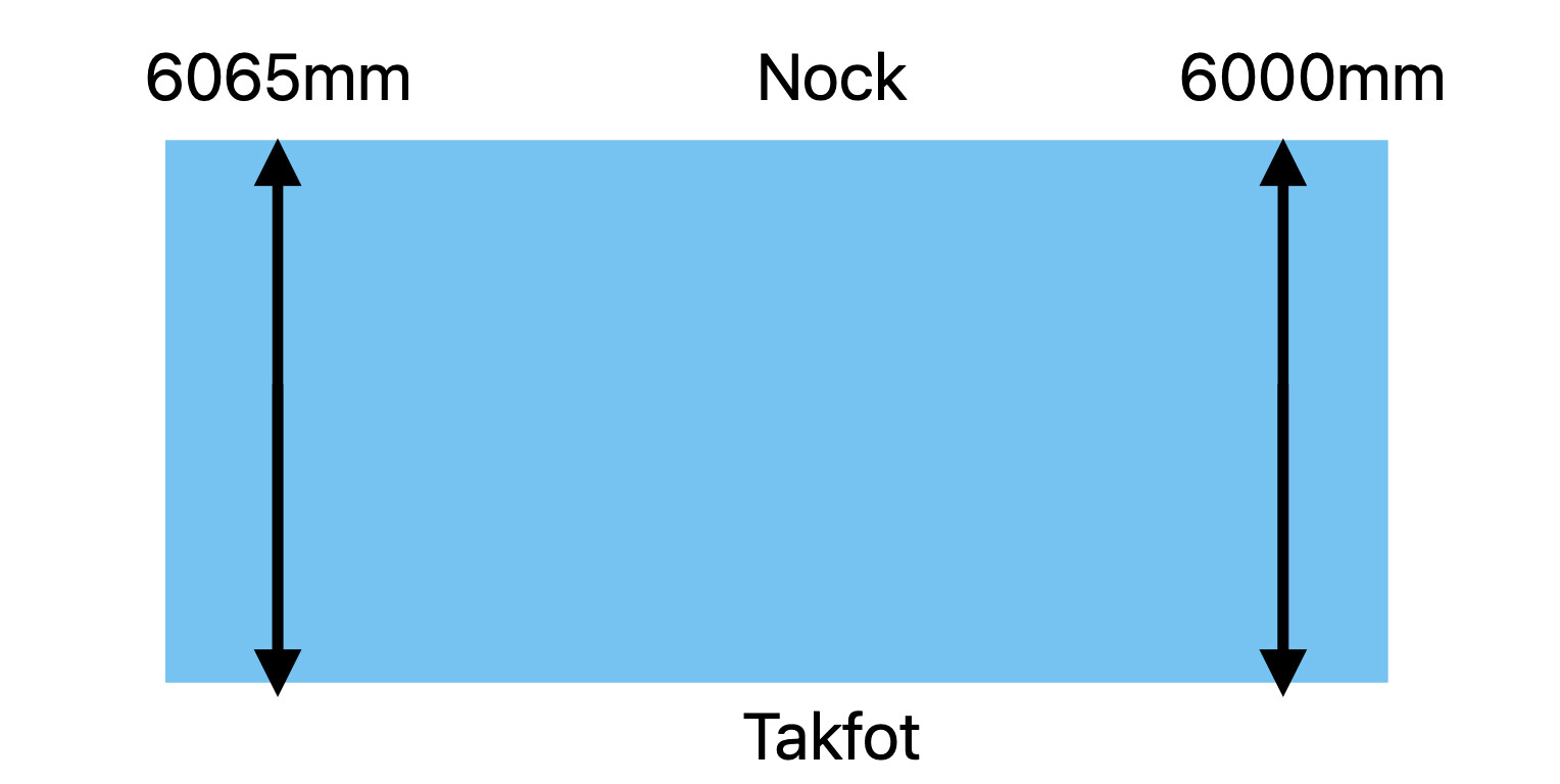 Problemet är att takfallet skiljer 65mm mellan HÖ och VÄ på samma taksida. (se bild)