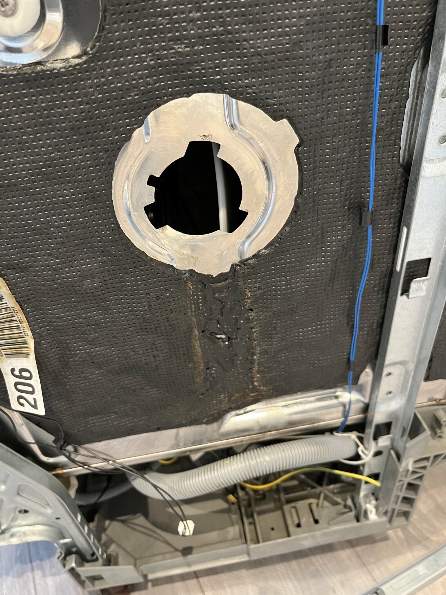 Diskmaskinen drogs ut, dammsögs torr efter bästa förmåga och lades därefter på rygg.