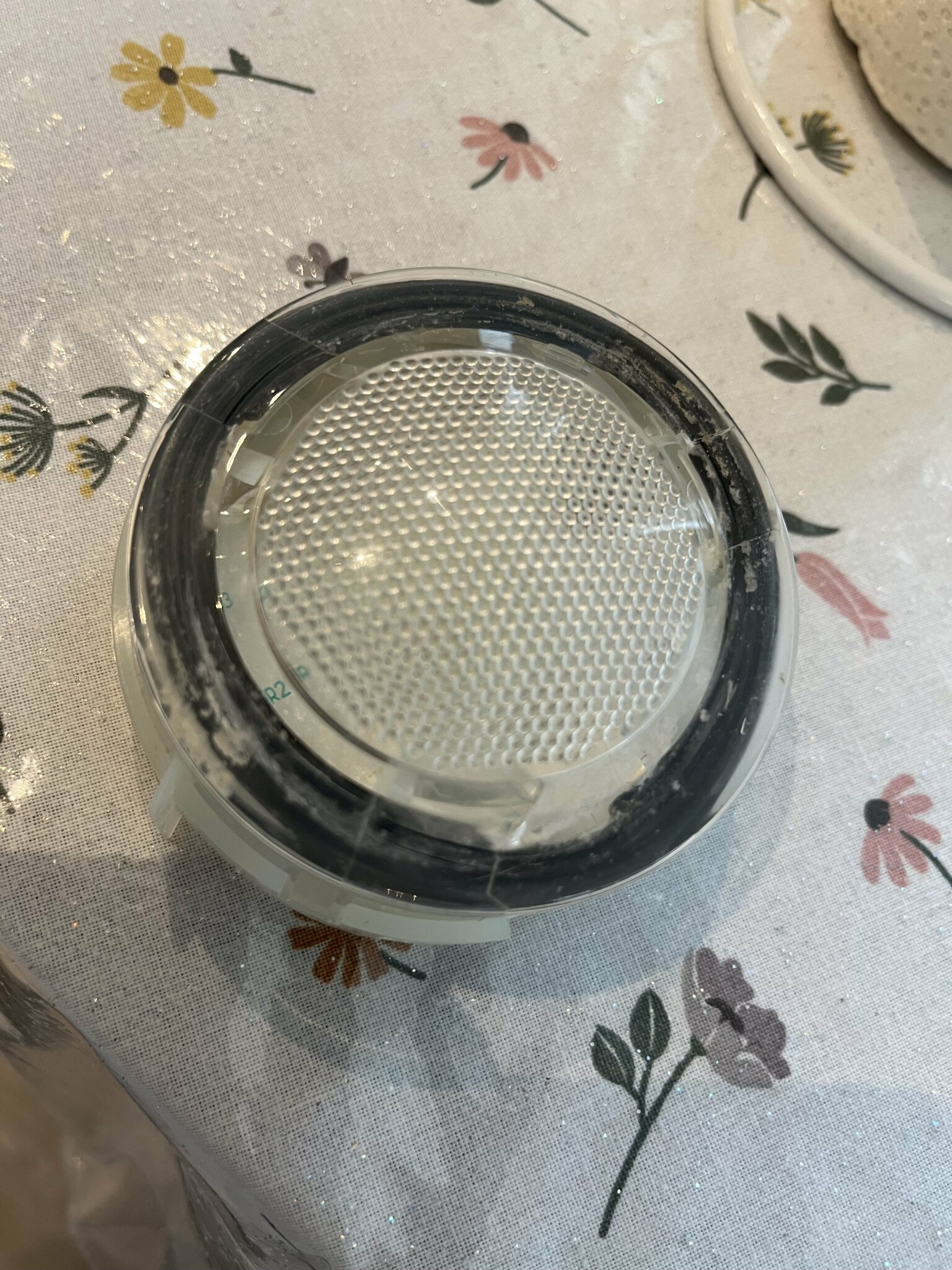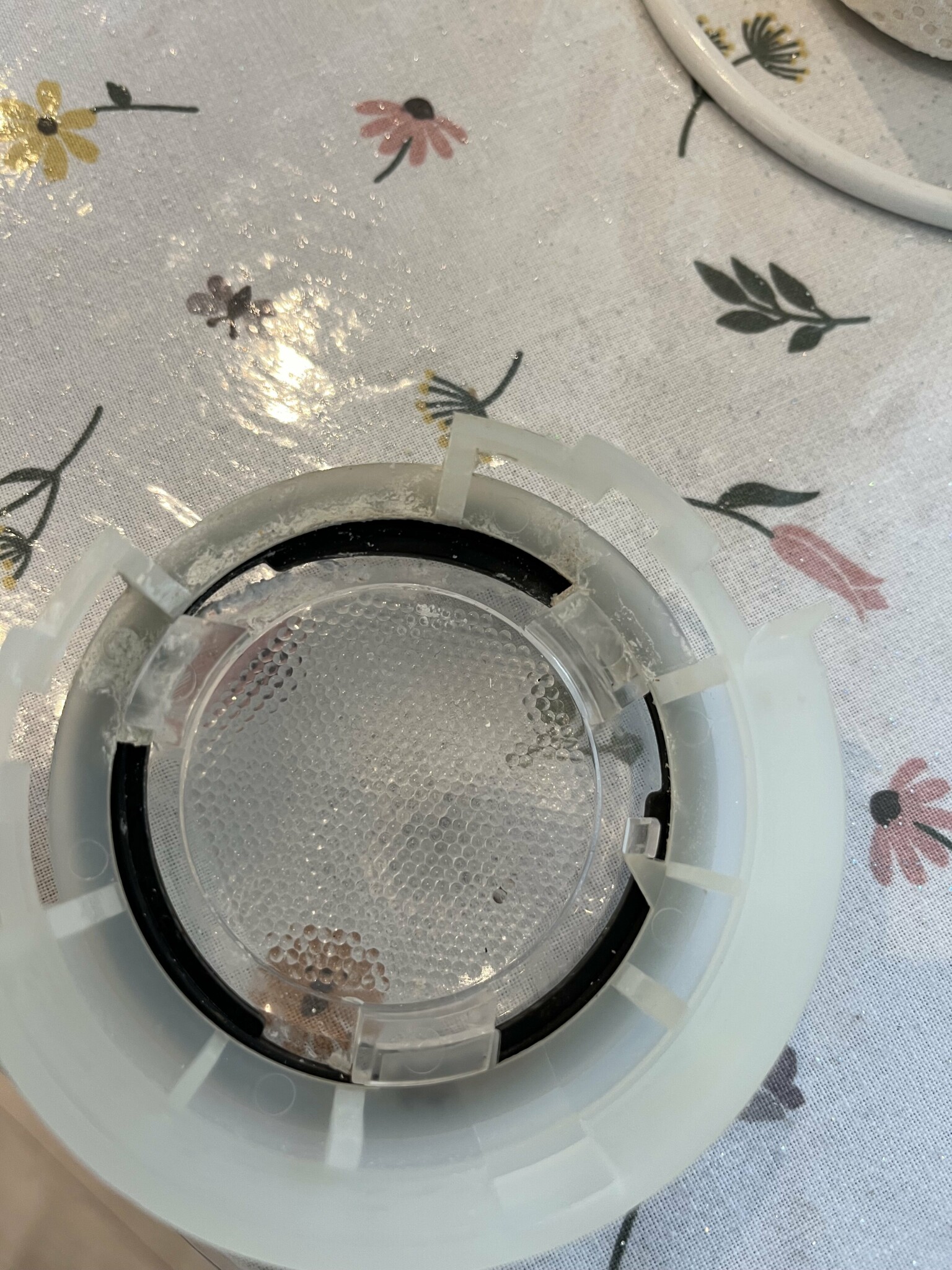 Försöker se var läckan är... Det är lite klibbigt/fuktigt på den svarta "slangen", men ser även något gulaktigt i vad som ser ut som en skarv i "brunnen" under silen..