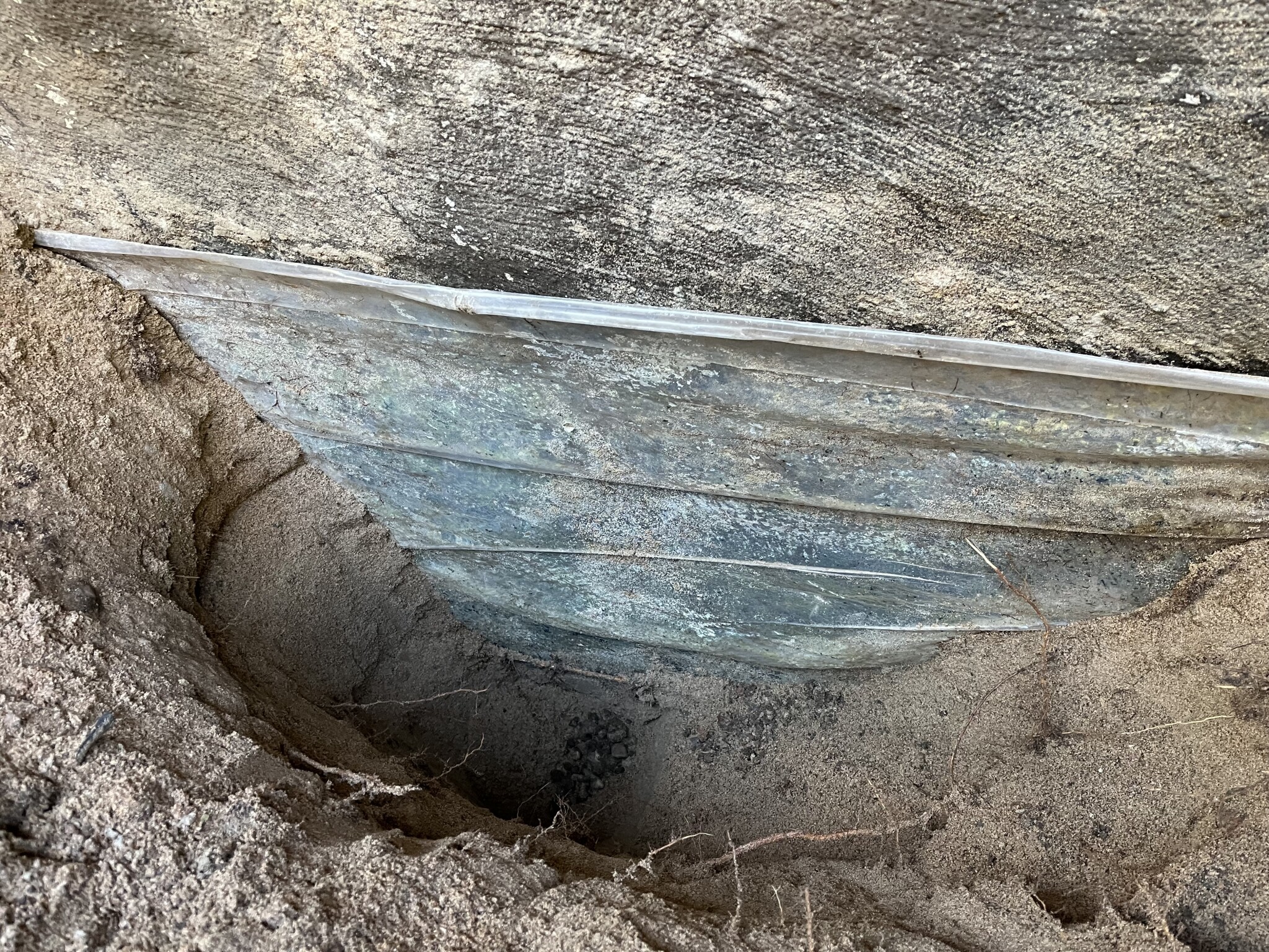 Vi har nu grävt fram grunden och upptäckt vad vi tror är problemet- att vatten rinner längs rör från den gamla oljetanken genom grunden vid kraftigt regn i kombination med en icke helt adekvat avrinning från stupröret.