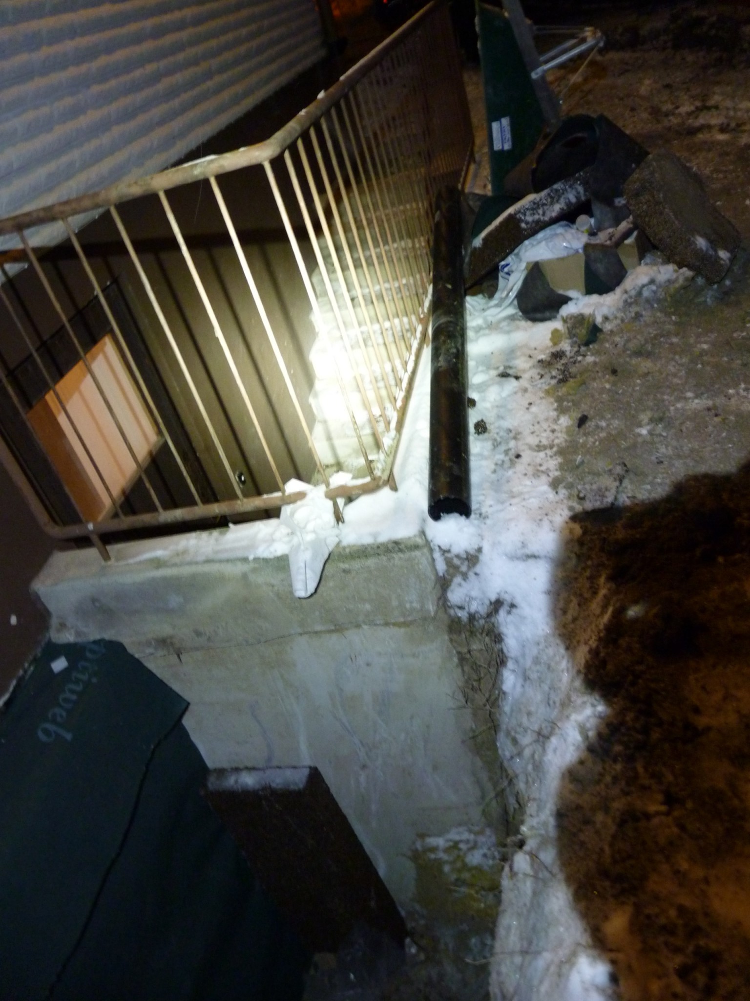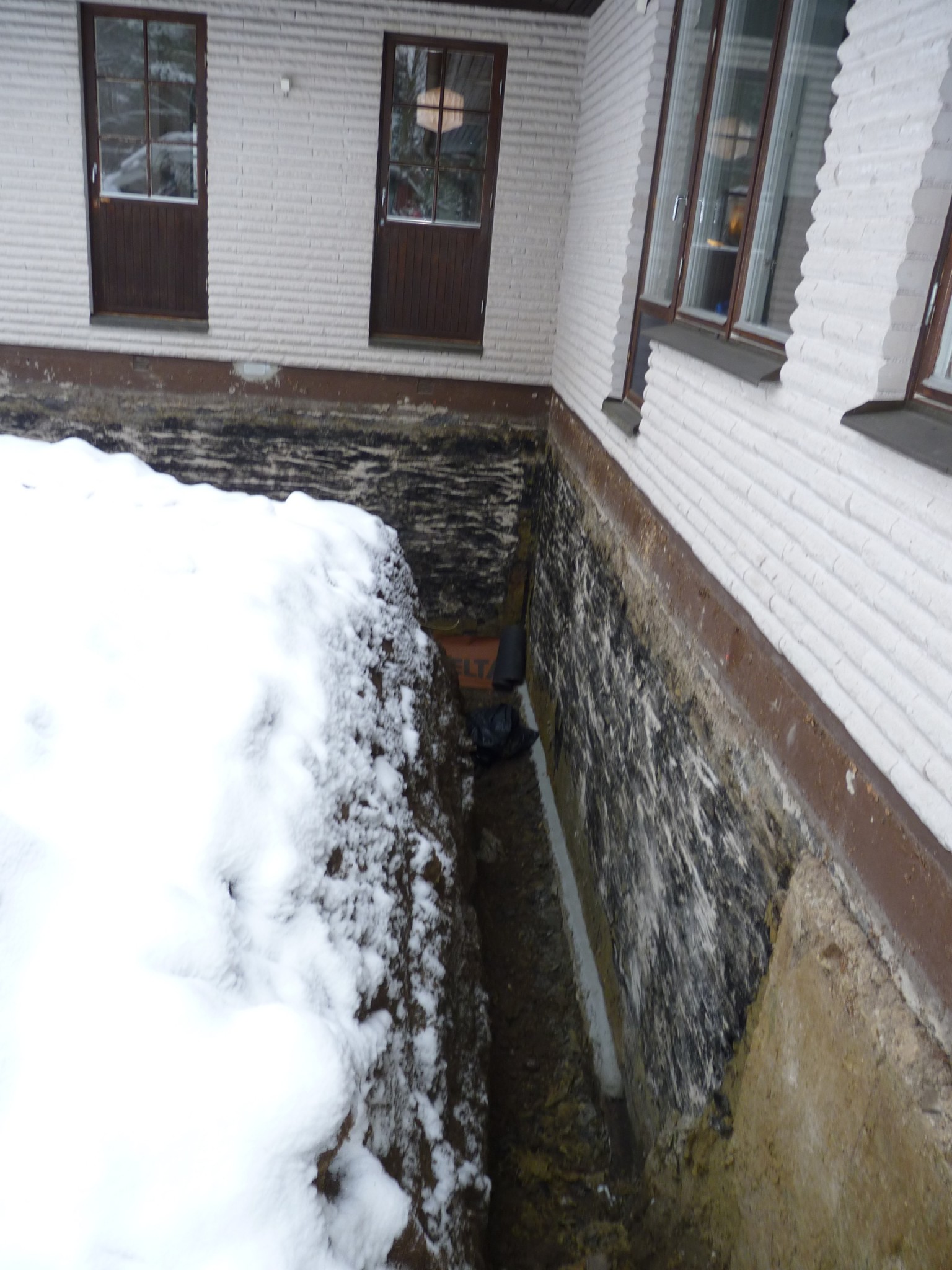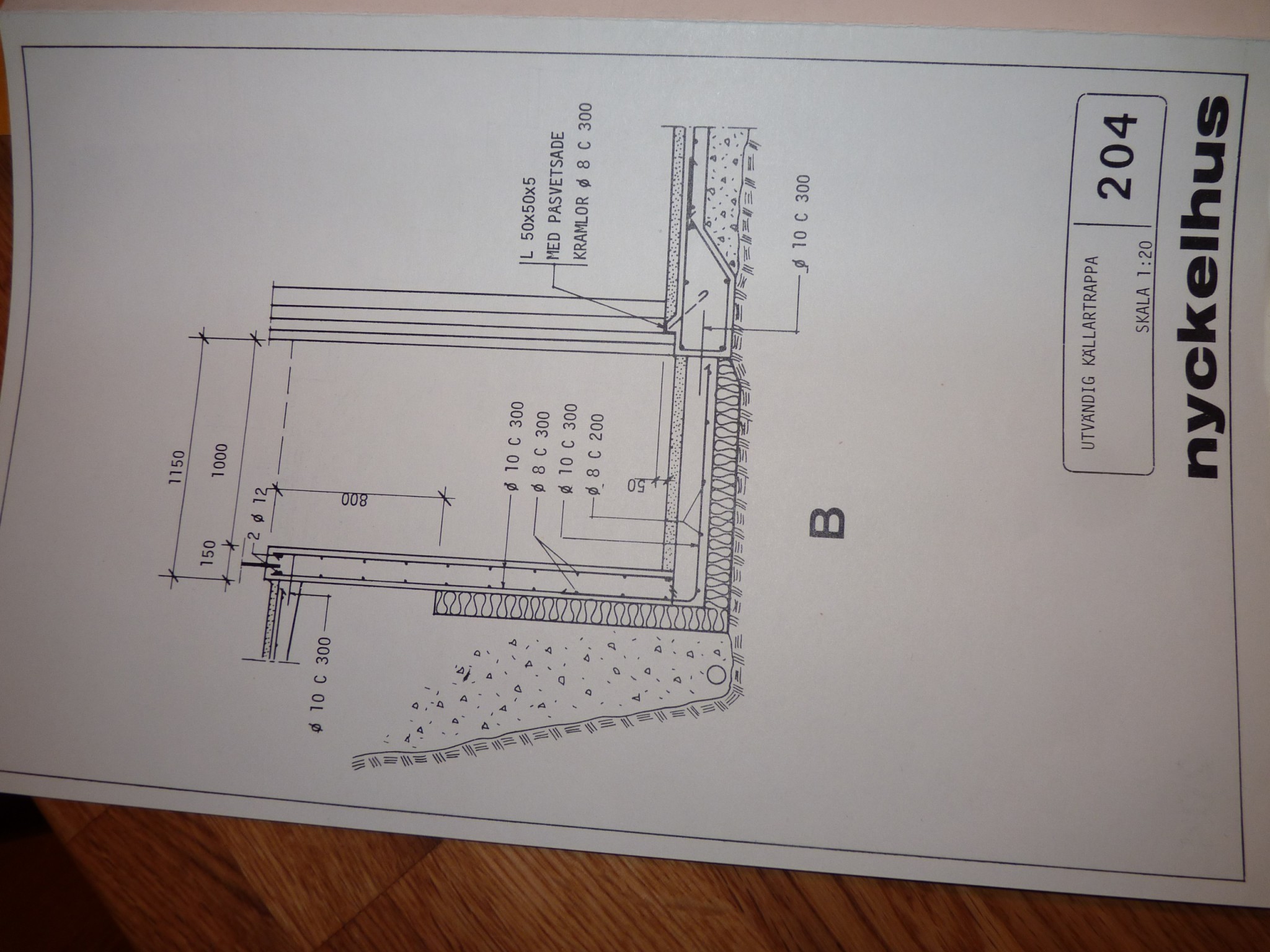 De säger att det inte behövs isolering utanpå källartrappen (grovingången utomhus, in i källaren), och att det räcker med en platonmatta för att hålla fukten borta och att det är meningslöst att sätta isolering på en kall källartrappa. I byggplanen från 1974 så finns en elefantmatta för isolering under och runt hela källartrappen, som skulle appliceras "vid kärlfarlig mark". Jag vet inte precis vad det innebär, men den kortsida av källartrappen som grävts upp hittils var isolerad, så jag tror att det är gjort enligt byggplanen. Jag antar att enda anledningen till detta är att källartrappan annars kan leda ner tjälen under/kring trappan, så att det blir kärllyft eller problem med dränaget? Är det något som man bör oroa sig för, eller räcker det med platon runt om, även om det skulle bli en riktig vargavinter? Vi hade inte tänkt gräva ur under trappan, så det är frågan om motstående kortsida och utsidan (långsidan) av källartrappan. Jag lägger in några bilder på trappan och byggplanen nedan.