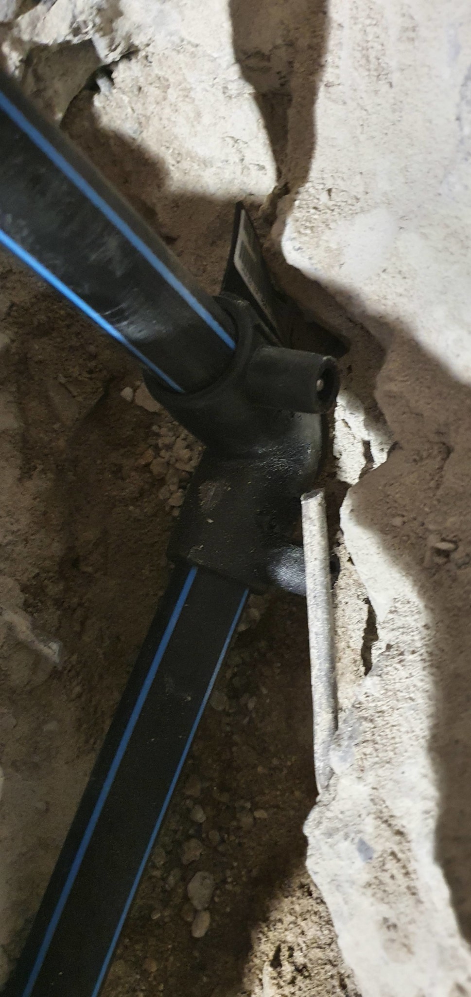 Ja. Det bidde elofit elsvetsmuffar. Nu står det tryck på hela härligheten till imorgon för att försäkra om att det blivit tätt, sen igengjutning. Första inspektionen såg glädjande ut.