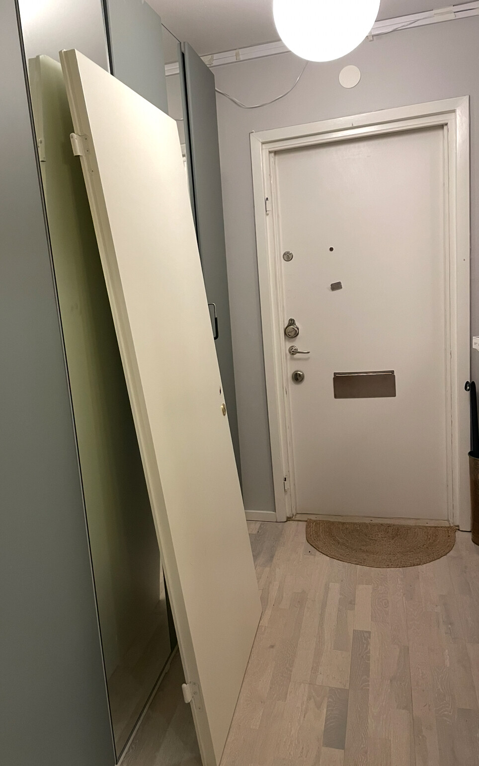 (Det ihåliga bruna dörrbladet är måtten höftade och fyller inte ut hela ytan. Ett test).