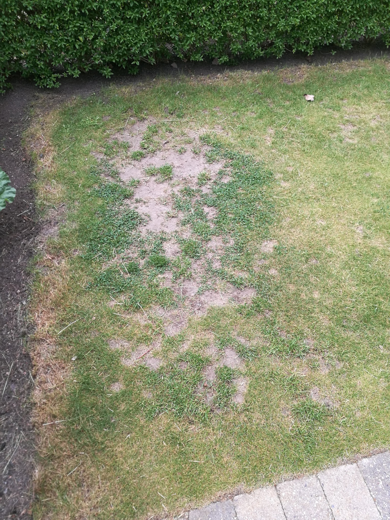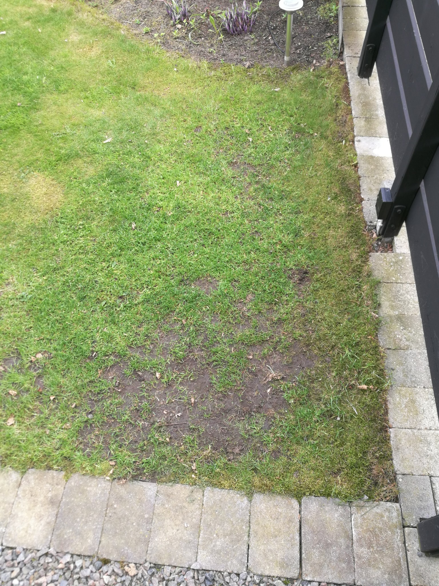 Har några plättar på gräsmattan där allt gräs försvunnit helt och delvis. Min tanke är att jag luftar/vertikalskär den, dressa och stödsår nytt gräs över hela. Därefter näring.