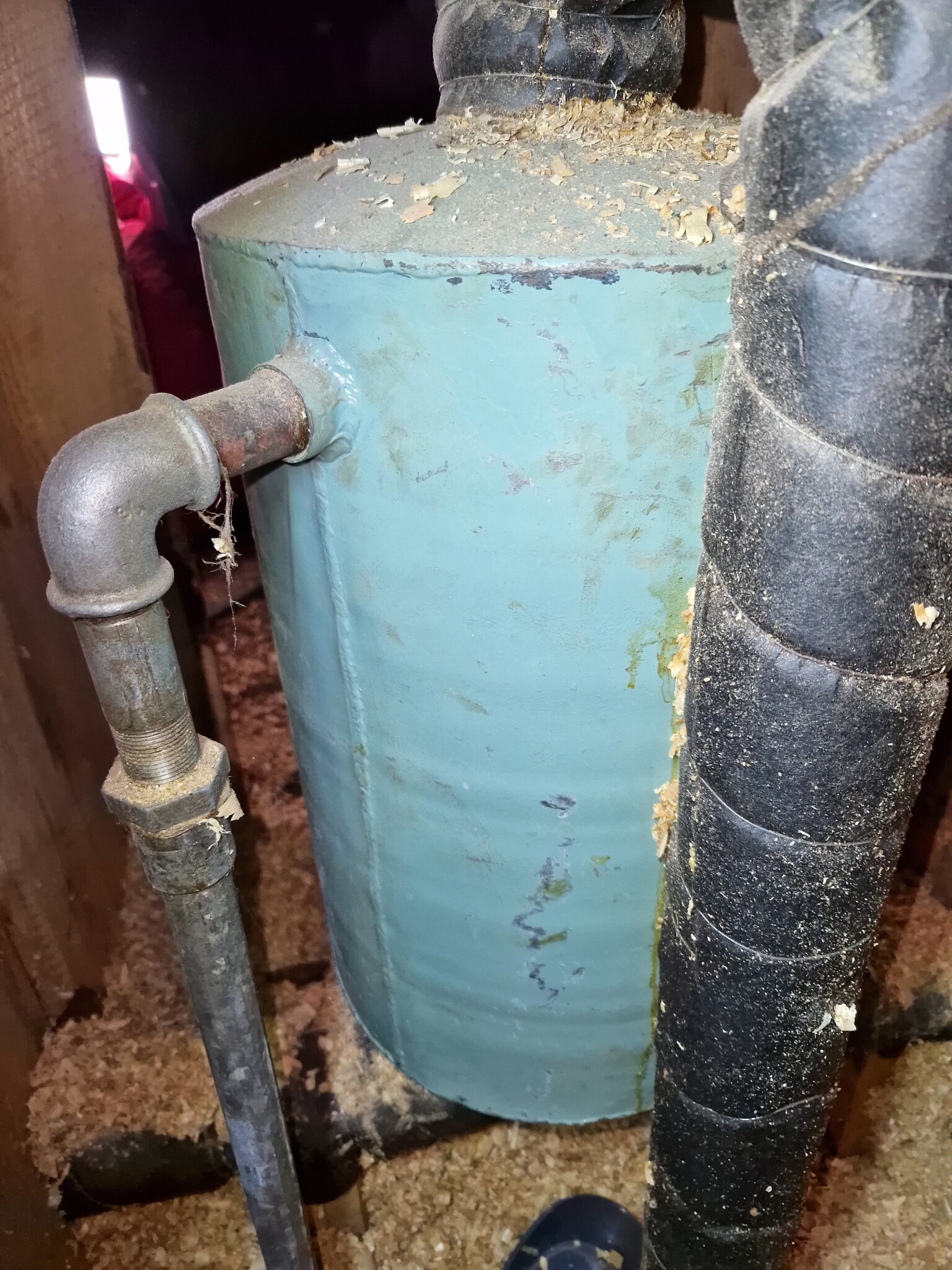 Nu har vi precis upptäckt att det är ett litet rosthål på det öppna expansionskkärlet som sitter på vinden.