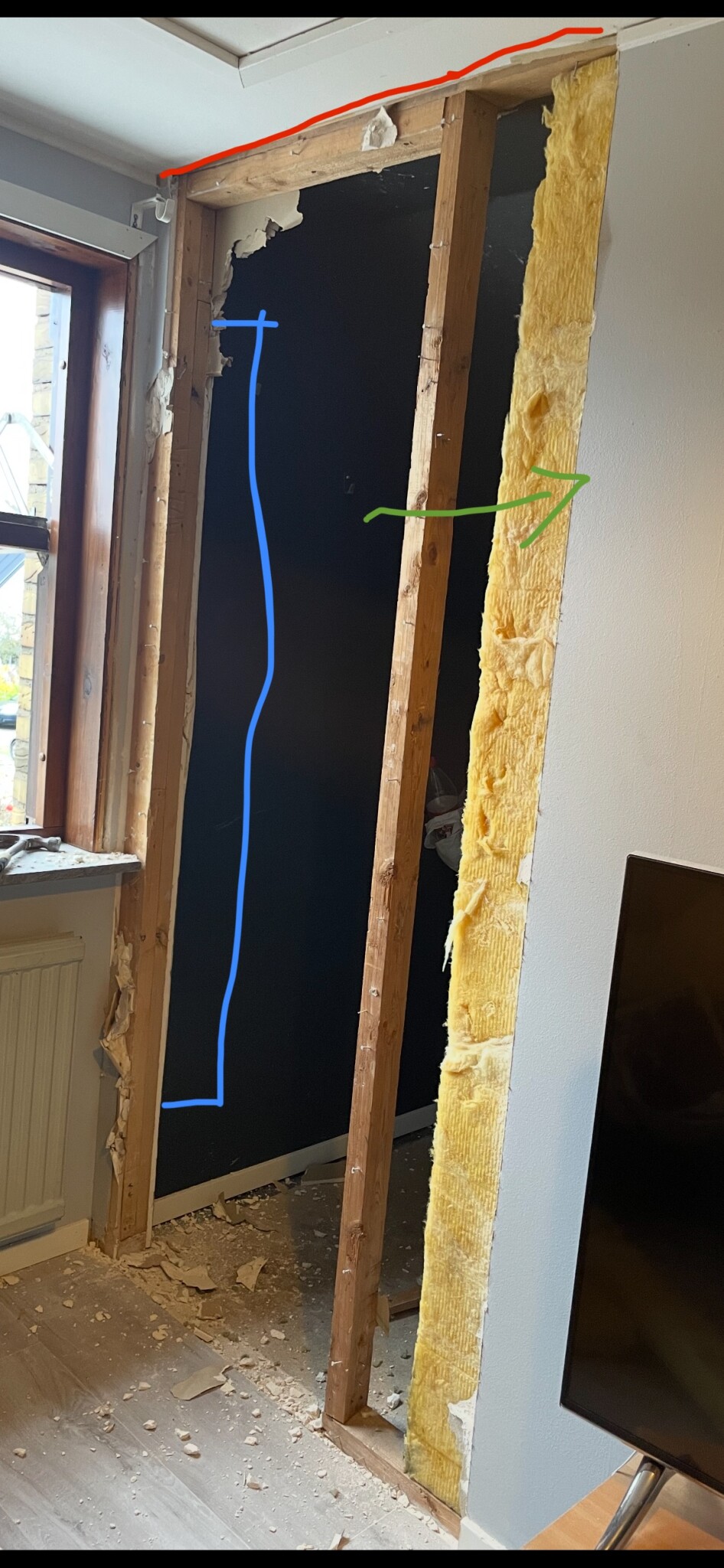 Den reglen som står mot ytterväggen(blå) vill va plocka bort och den till höger där jag markerat med grönt kommer flyttas bort där väggen slutar.