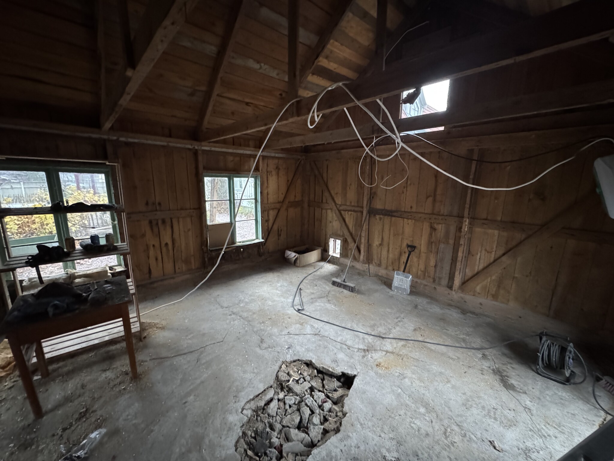 , jag ska ju behålla balkarna upp mot råsponten, den nedre balken som man spikar innertak i nu ska bort så jag får öppet till nock