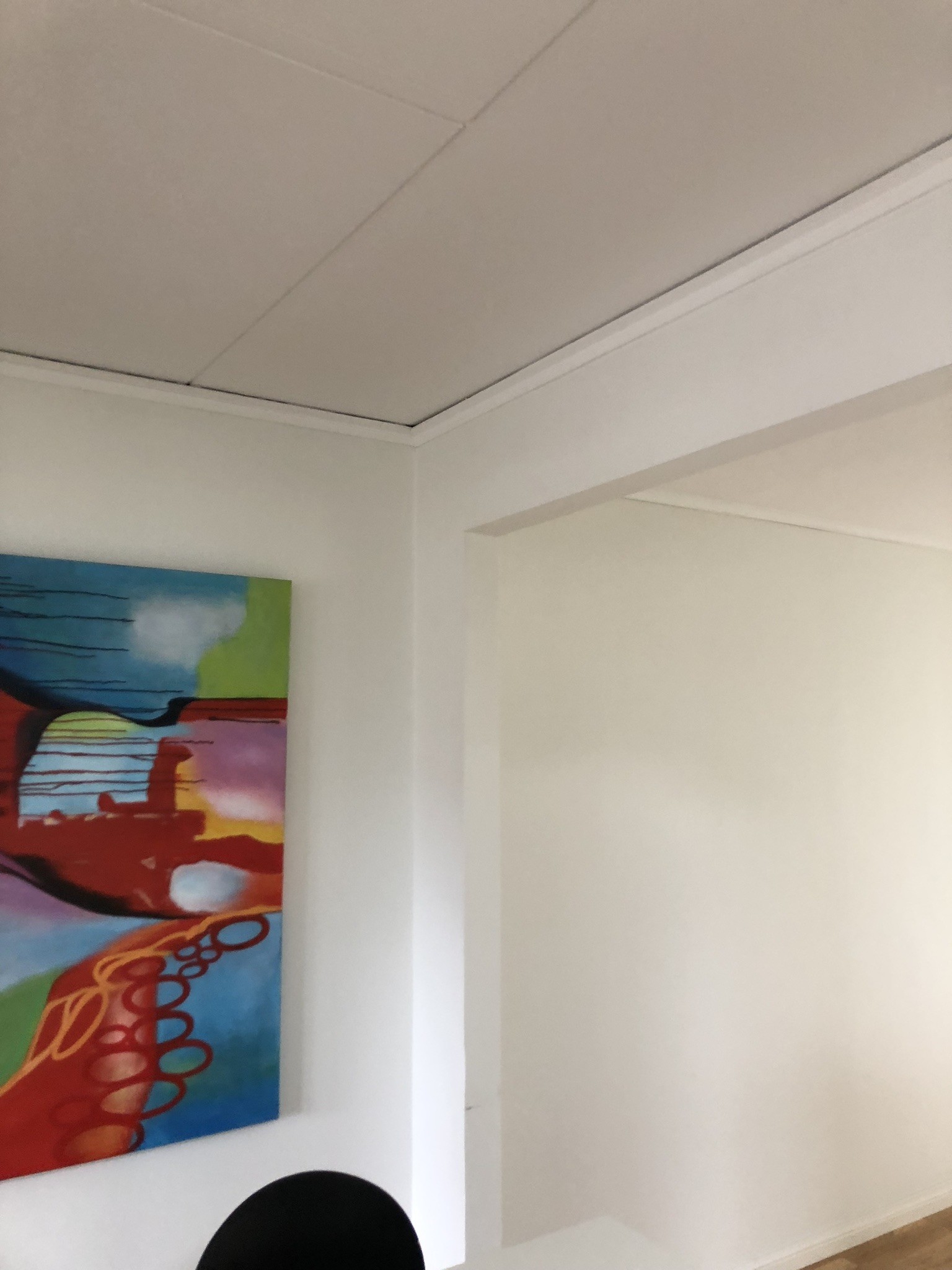 Jag bifogar bilder som jag sprang in och tog hos grannen. Hade en till snickare inne idag och som gav det ett öga. Han gick mellan mitt öppna skelett och grannen och kom med samma synpunkter att flytten av bärigheten med exakt distans 3,10 till ska räcka.