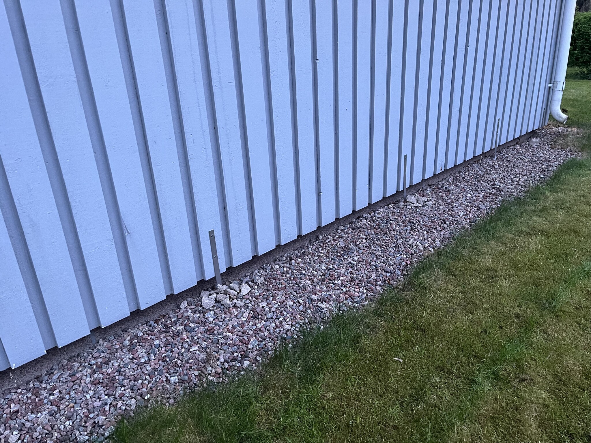 Hej! Har försökt googlat men är bedrövlig på det så vänder mig nu till er! Har som små metalband som går längst med huset på ena sidan och har ingen aning om vad dom gör/är för något. Bifogar bild så ni förstår vad jag menar.