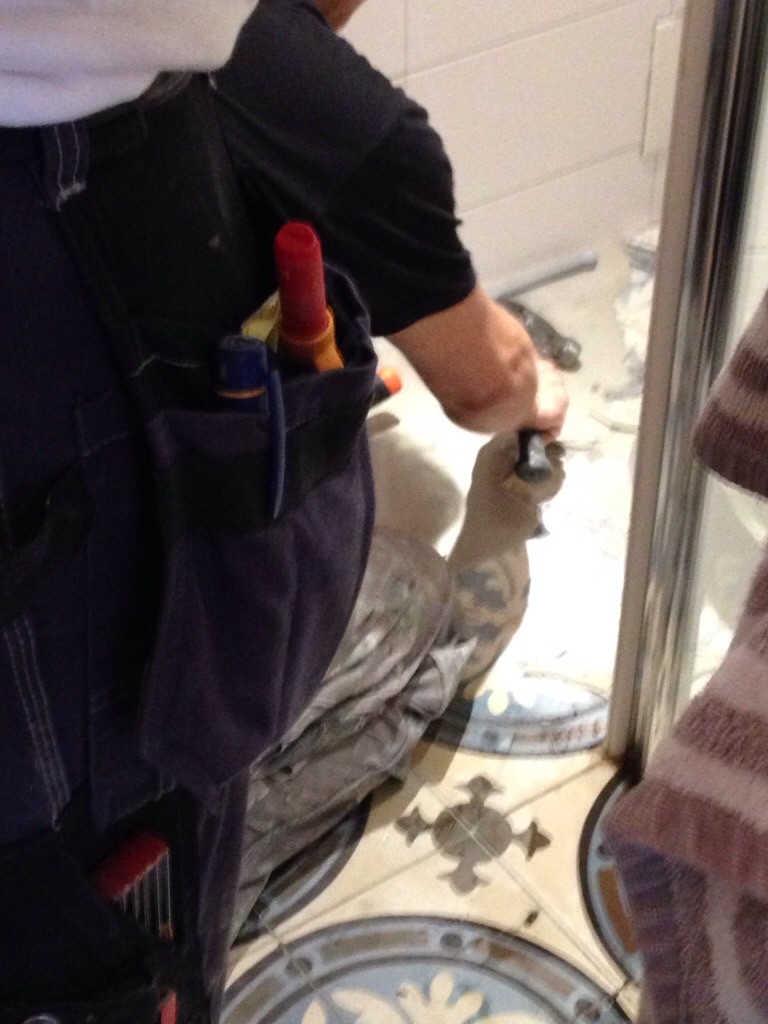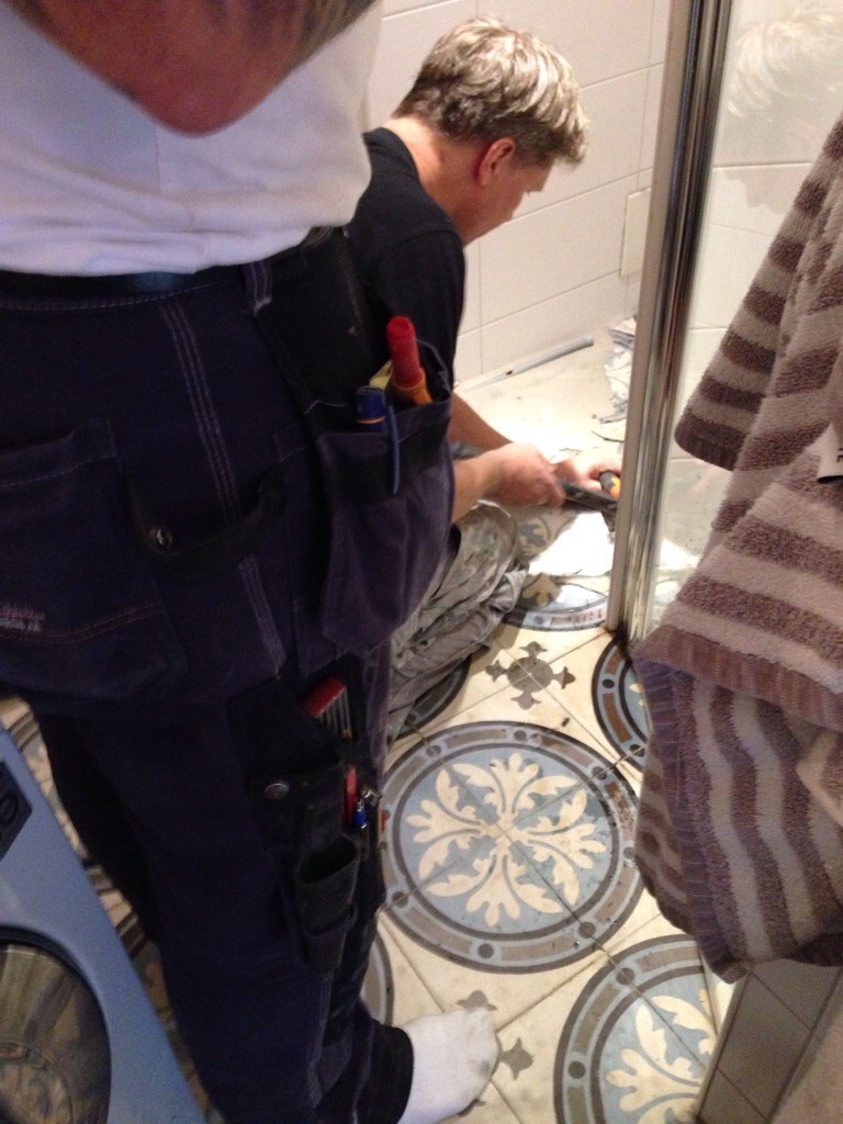 Hantverkarna tar ev kostnader, för tex nya plattor och arbetet med att sätta in nytt golv inkl ny fuktspärr om så krävs. Det gjorde vi upp innan första hacket