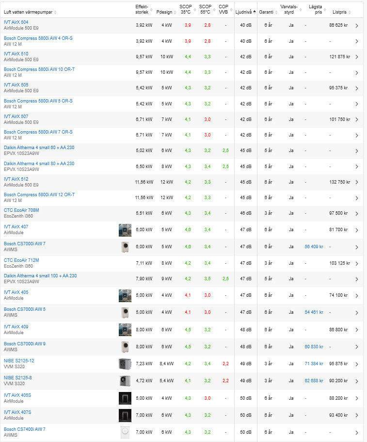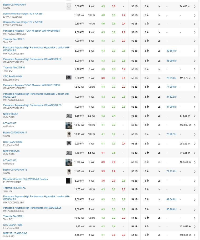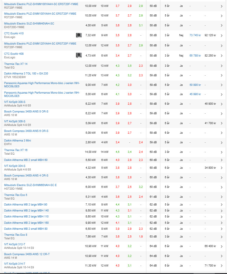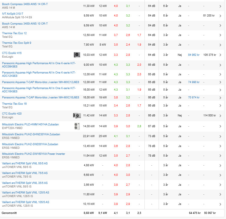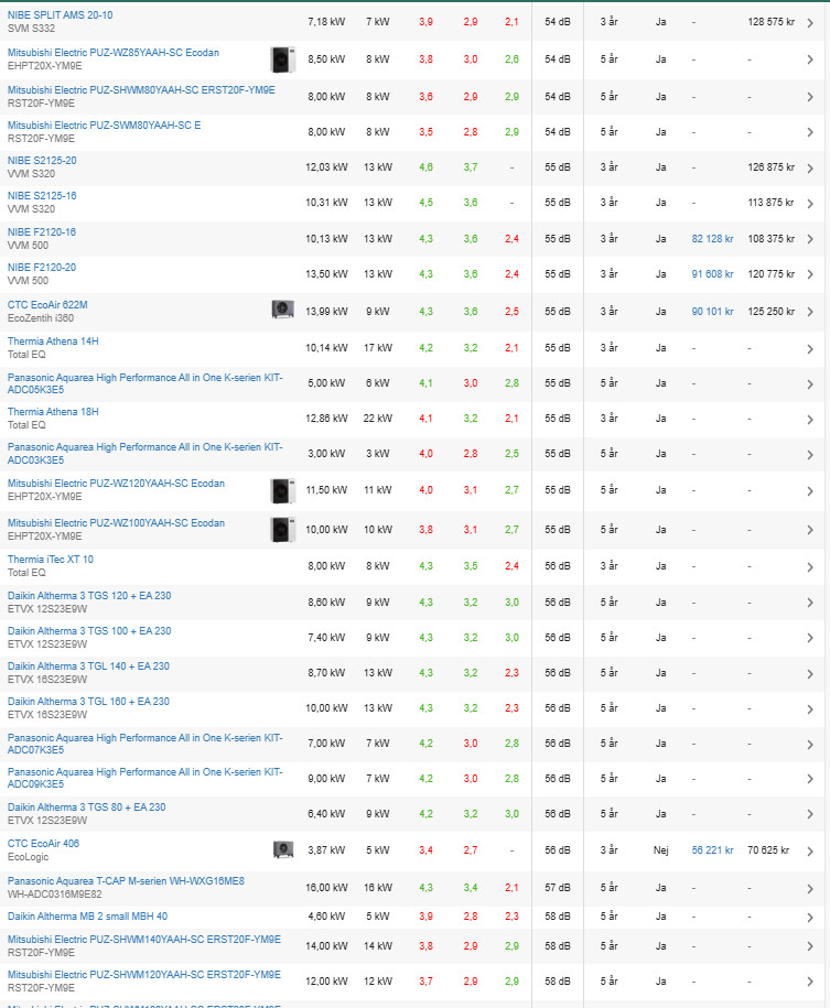 Mitsubishi har släppt en ny modell nu i sommar som går tystare och kan producera högre framledningstemperatur.Q Qjanto skrev:Oj... vi kollar på Nibe lvvp för att de ska vara bland de tystaste och huvudfokus är just låg ljudnivå. Fruktansvärt ångestfyllt är det att välja rätt system. Vi kan välja även frånluftvärmepump, för det har vi haft hittills, men även nibe s735-7 (frånluft vp) verkar väsnas en hel del även vid insugen.Vilken modell av Nibe har du? Och har du kanske någon filmsnutt på ljudet?