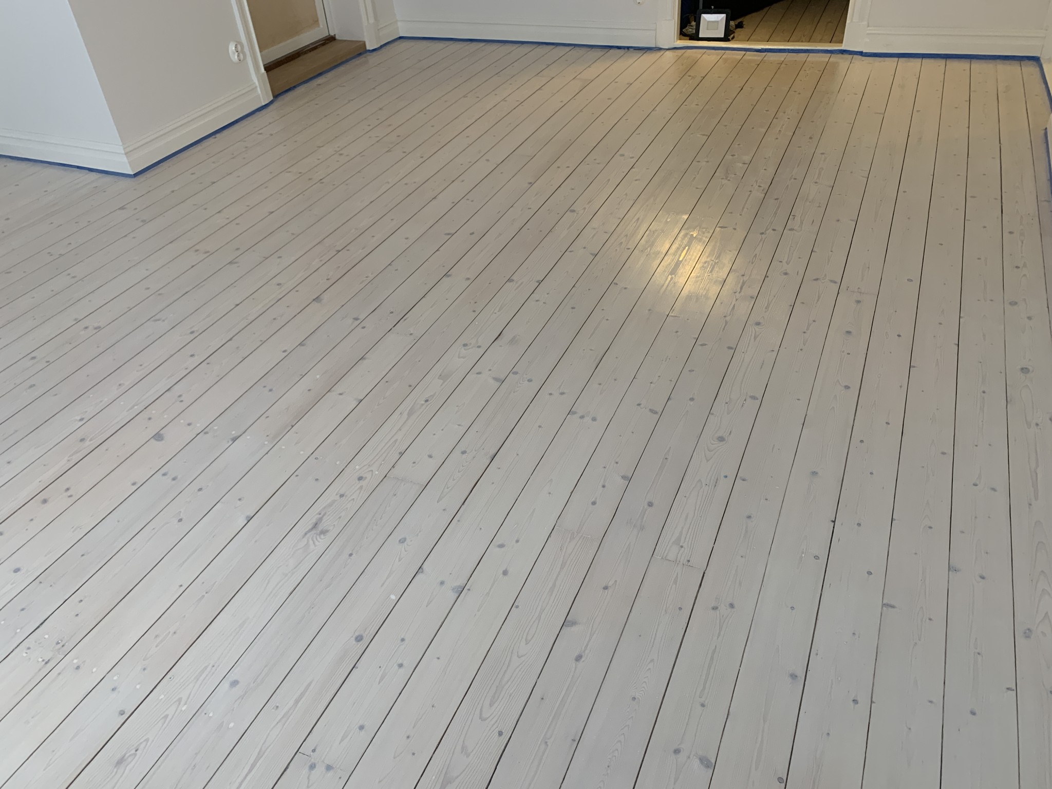 Nu är det enligt instruktionen dags att polera golvet med vit fiberduk och efter 2 veckor såpskura det med vitpigmenterad såpa.