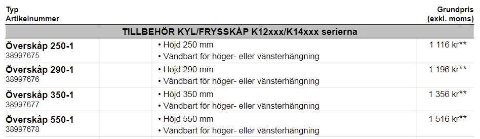 Skulle nu vilja köpa överskåp till dessa två. Miele har överskåp i olika storlekar och jag är intresserad av modellen som är 55 cm hög.