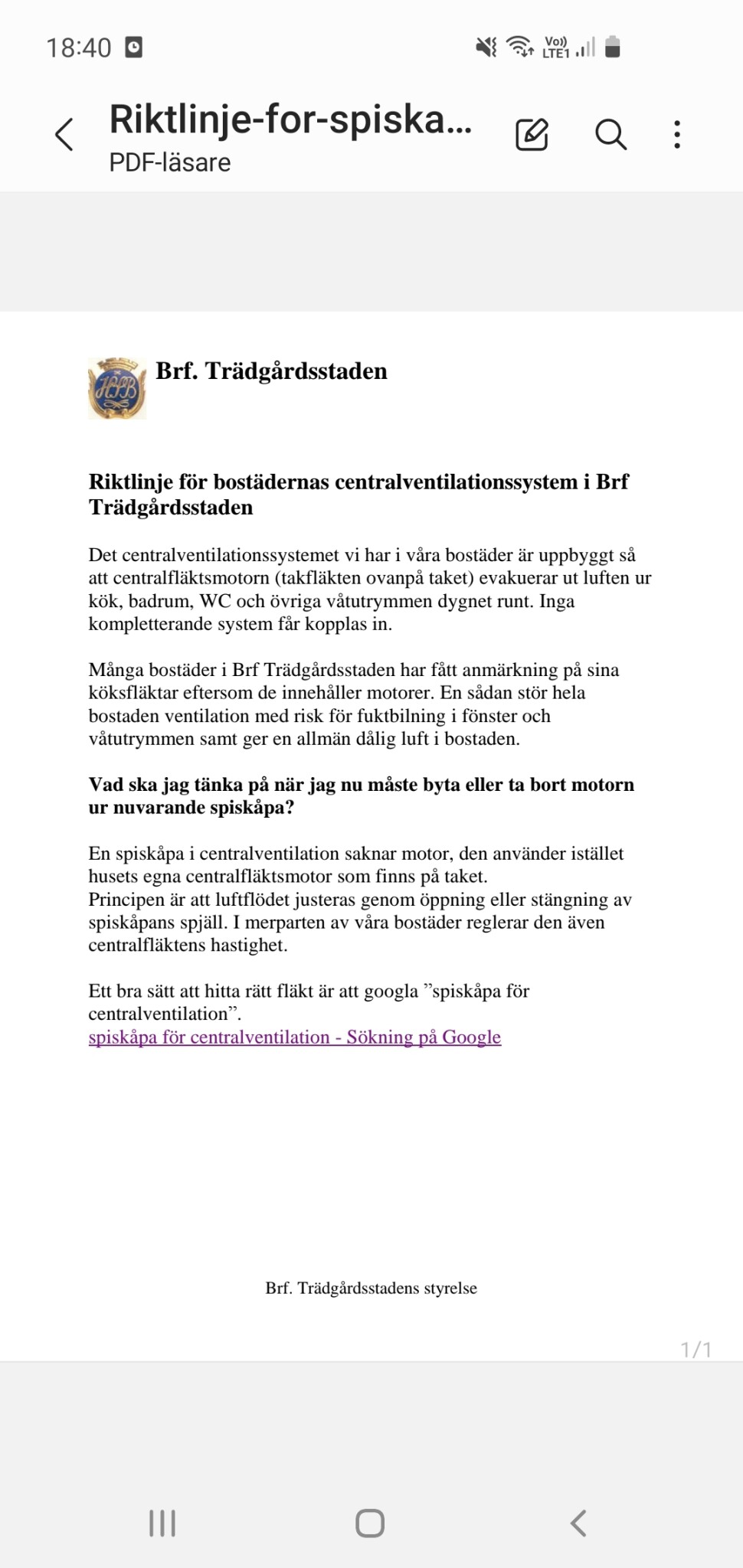 Varför menar du att OVK-firman har fel? Har de fel i att det inte ska vara en fläkt där och istället en kåpa med spjäll som styrelsen har informerat medlemmarna om?C cpalm skrev: