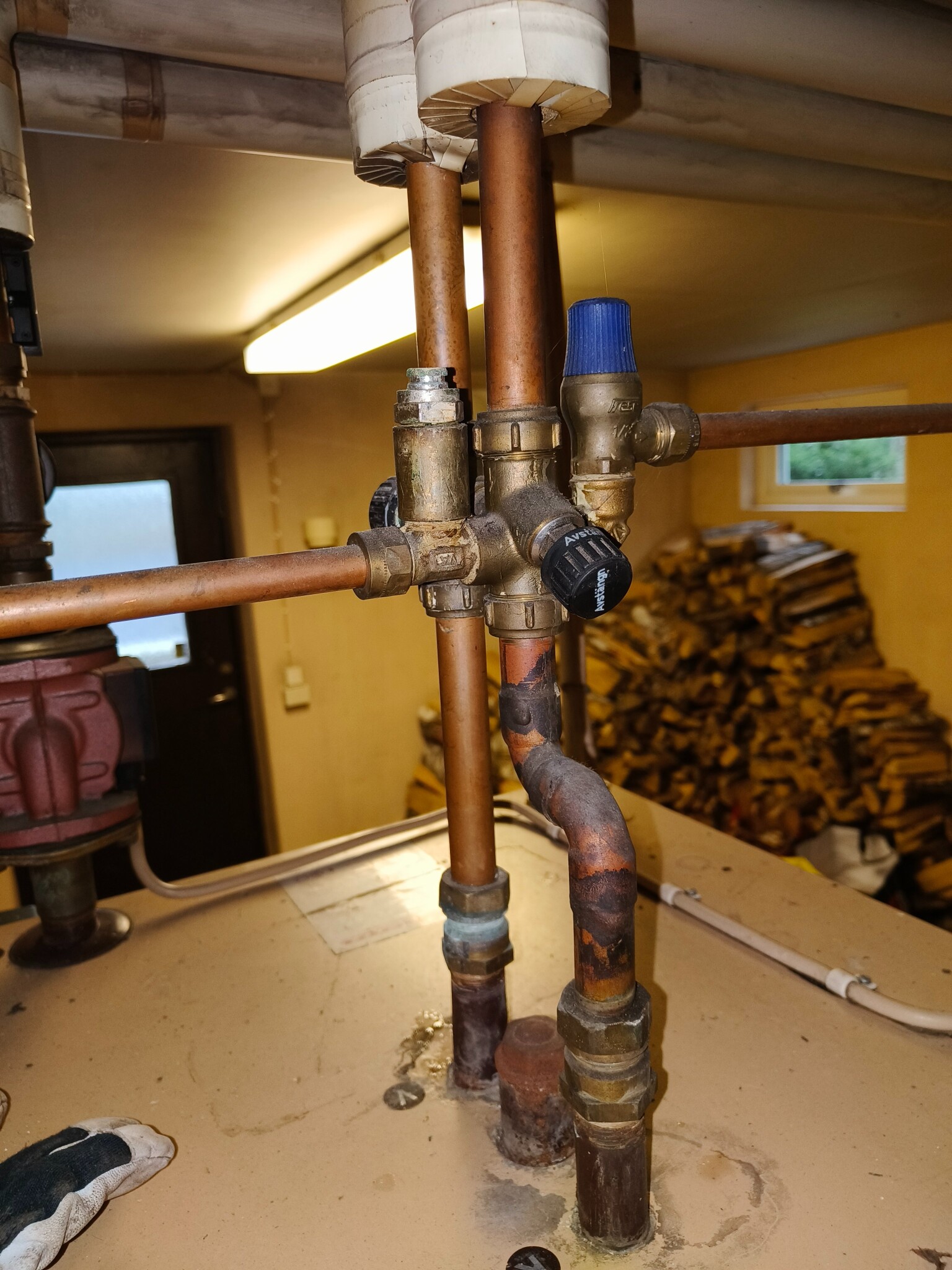 Jag ser på tryckmätaren att det ligger ganska lågt ca 0,25 Bar och jag skulle behöva fylla på vatten till systemet men jag är helt ny på detta och har ingen aning om vilken ventil det kan vara.