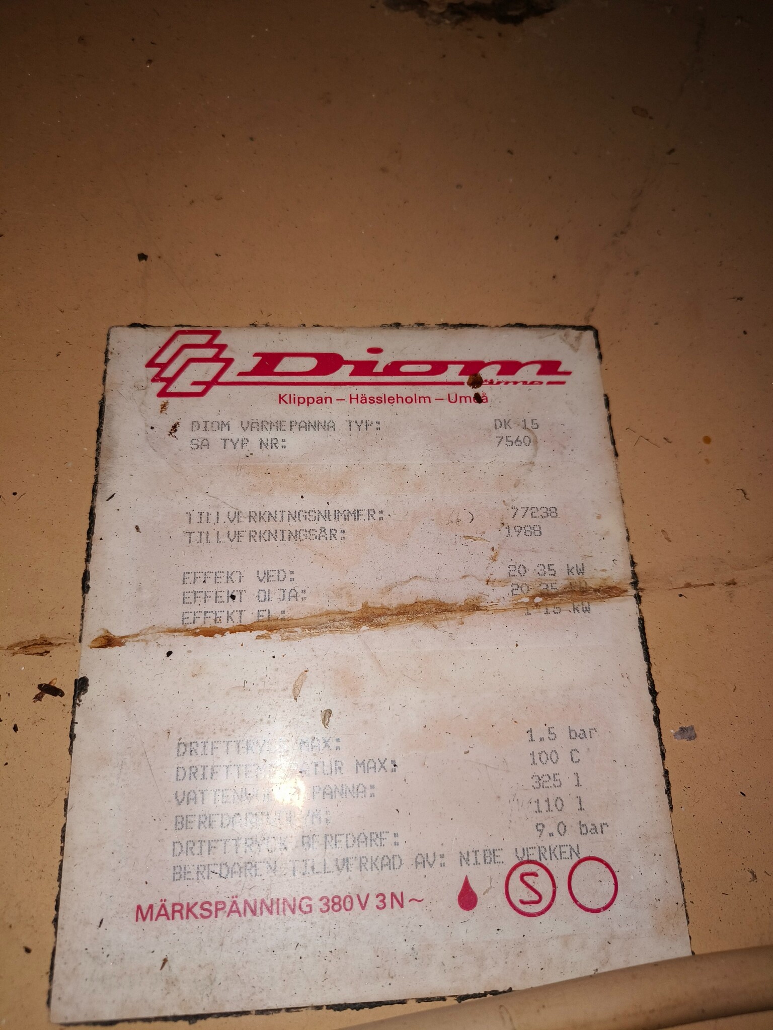 Jag har en gammal vedpanna från 80-talet med vattenburet system upp till huset. Det är en Diom DK 15.