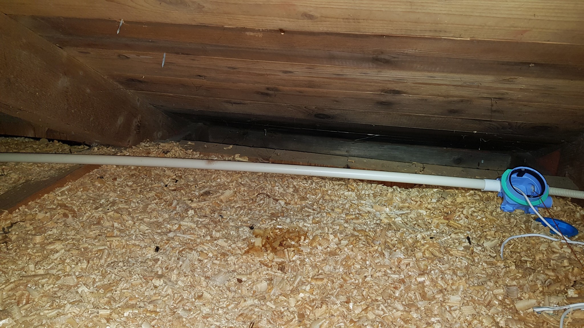 I natt regnade det ca 20 mm och vi vaknade av att det droppade från taket i sovrummet. Såg nu på morgonen att det även droppar från taket i källaren under sovrummet.