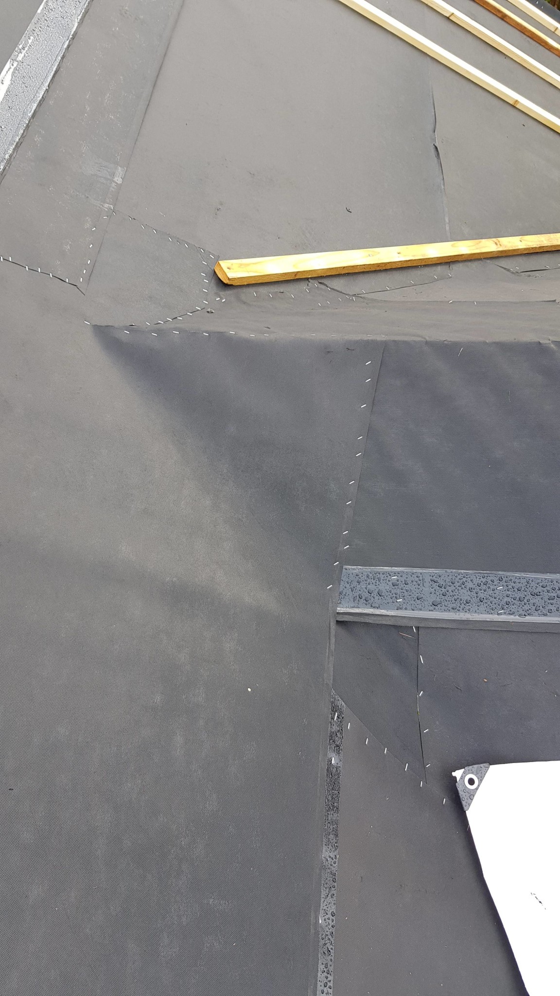 Jag påpekade det för hantverkarna. De sa att de skulle limma takpapp ovanpå alla häftklamrar. Jag vet att det fortfarande inte är enligt monteringsanvisningarna, men frågan är vad jag ska göra åt det. Jag har liksom inte tid att fixa hela taket själv.J J Vos skrev: