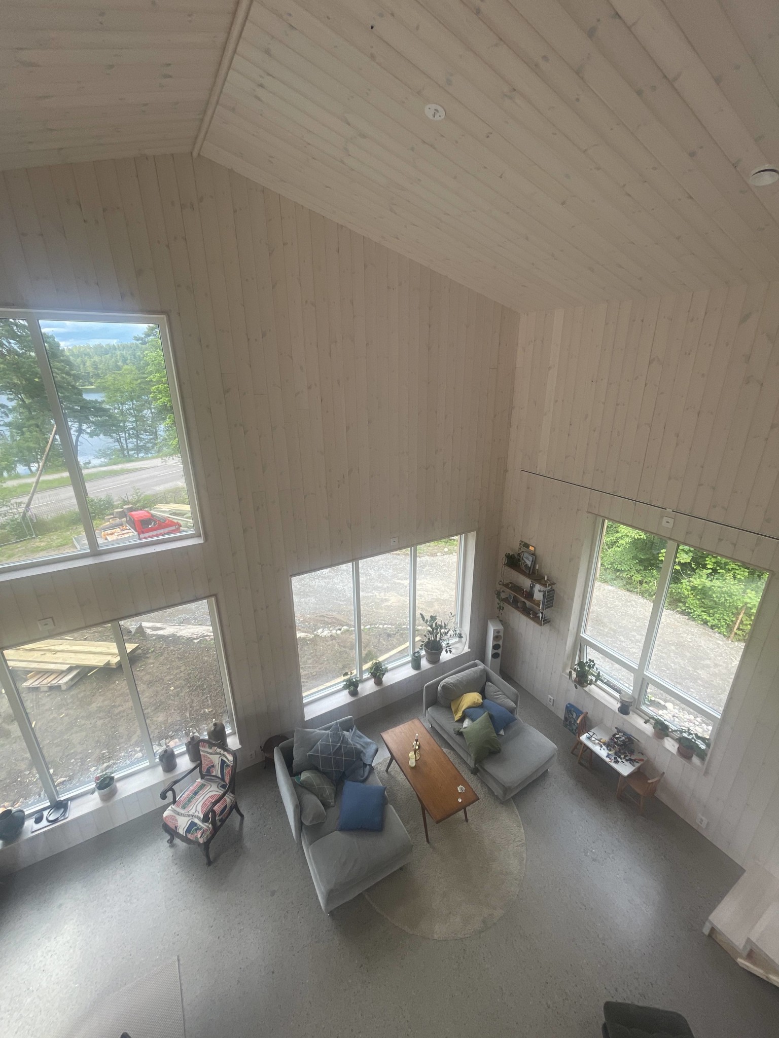 Vi har satt panel från Norrlandsträ i såväl tak som väggar! I väggarna har vi OSB eller spånskiva bakom. I tak är det bara spikläkt. Blir tokfint tycker jag och dessutom extremt skönt att slippa det oändliga spackel/slip/mål-helvetet!