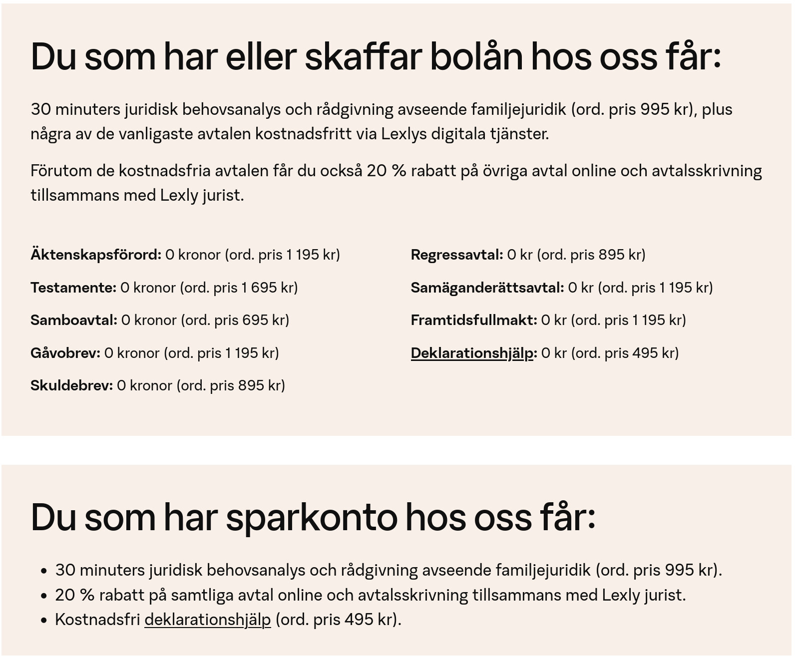 Är man kund hos SBAB är det gratis att gå via Lexly.