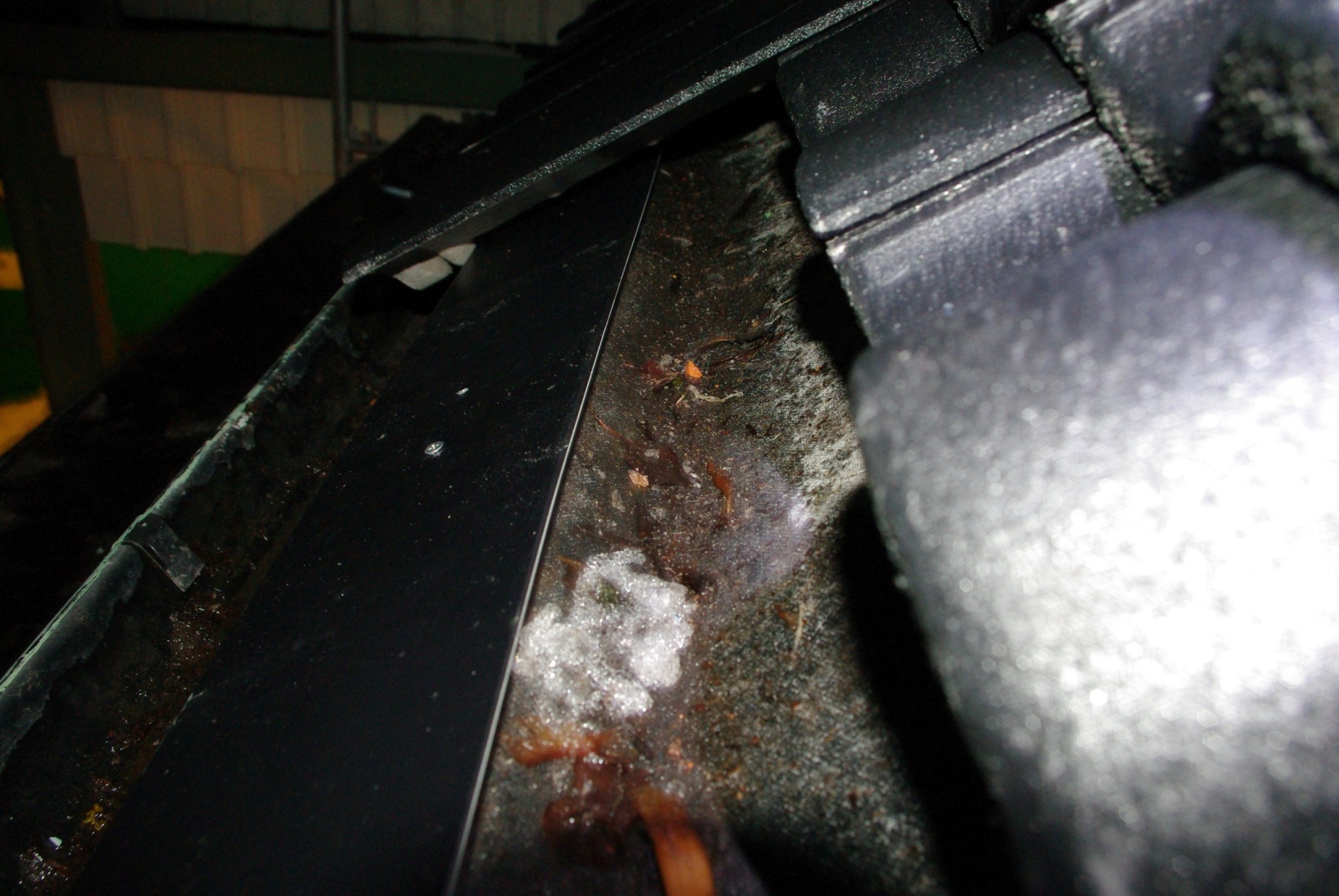 Dom har inte bytt hängrännorna så jag misstänker att dom gjorde så bara för att de skulle vara smidigt då hängrännekrokarna sitter på nedersta bärläkten. Sedan ligger pappen under takfotsplåten på ett ställe och över på dom andra sidorna? Förstår inget!