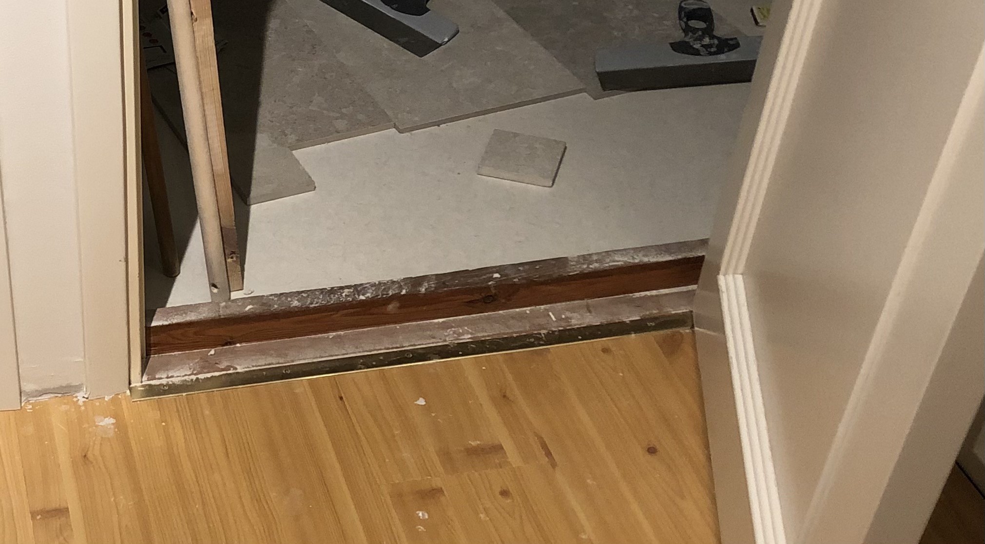 Hej, i badrummet har jag en tröskel, vilket syns på ena bilden nedan. I hallen, som vätter mot badrummet skall jag lägga parkettgolv. Jag skulle vilja ta bort den låga delen av tröskeln och sätter parkettgolvet där istället.