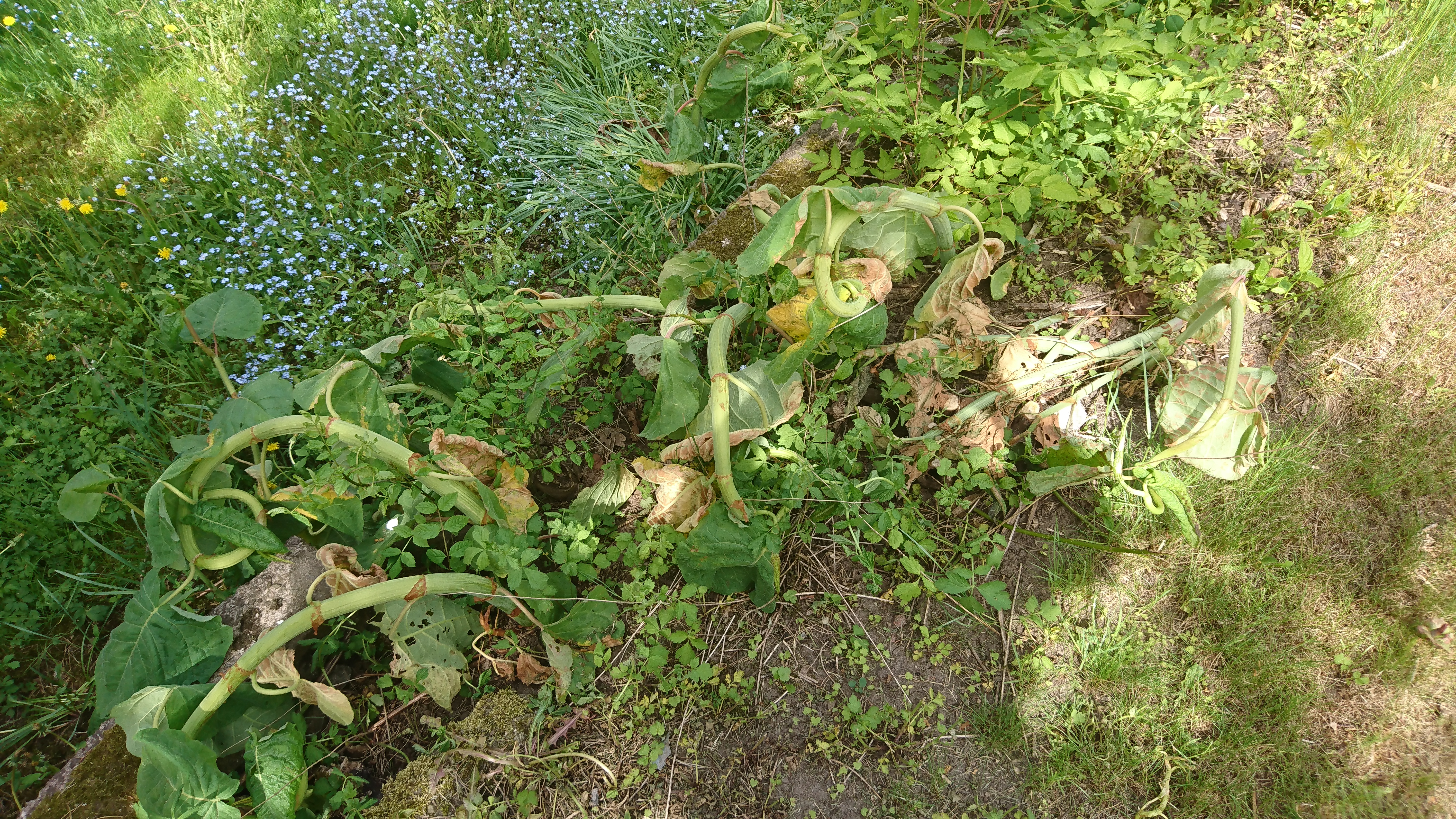 Ajajaj Gustav. Jag förstår verkligen din panik. Efter att ha tittat på och läst dokumentärt material från England så tänker jag att enda lösningen är 2-3 meters bortforsling av massor, och sedan helt nya så klart. Eftersom det växer från millimetertunna rötter som tappats så har du ju snart slide på hela tomten. Jag förstår faktiskt inte hur Cpalm kan vara så lugn...