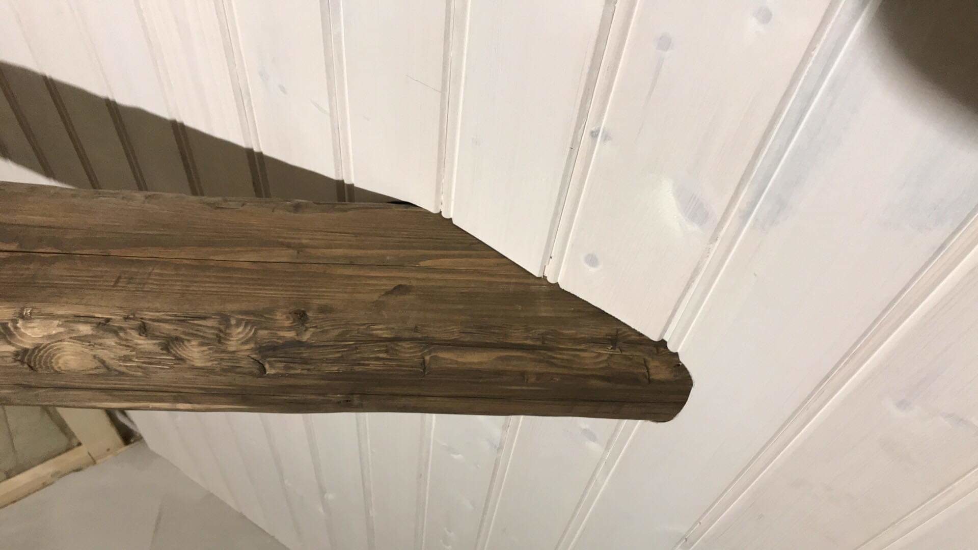 Takstolen som kommer ner i väggen är smått avsågad i nederkant, men enbart så lite att man kan få in plankan i sitt läge. Och med det så ser man knappt att det finns någon springa över huvudtaget.