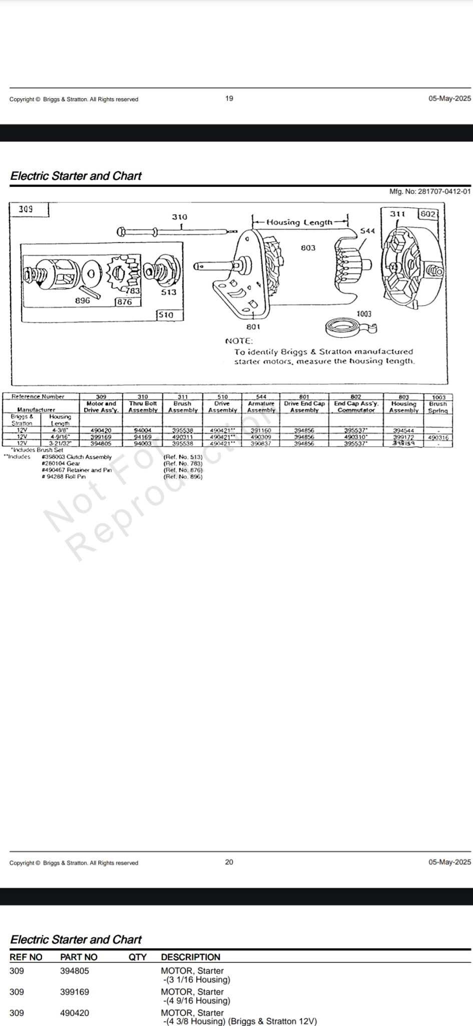 Som jag tolkar ref no 309 finns det tre olika som man kan särskilja genom att mäta längden. Men reservdelaronline anger ju samma del som ersättare till alla tre. Har man modellnumret till en Briggs & Stratton tycker jag att det brukar gå ganska bra att hitta reservdelar. I värsta fall går det väl att returnera.