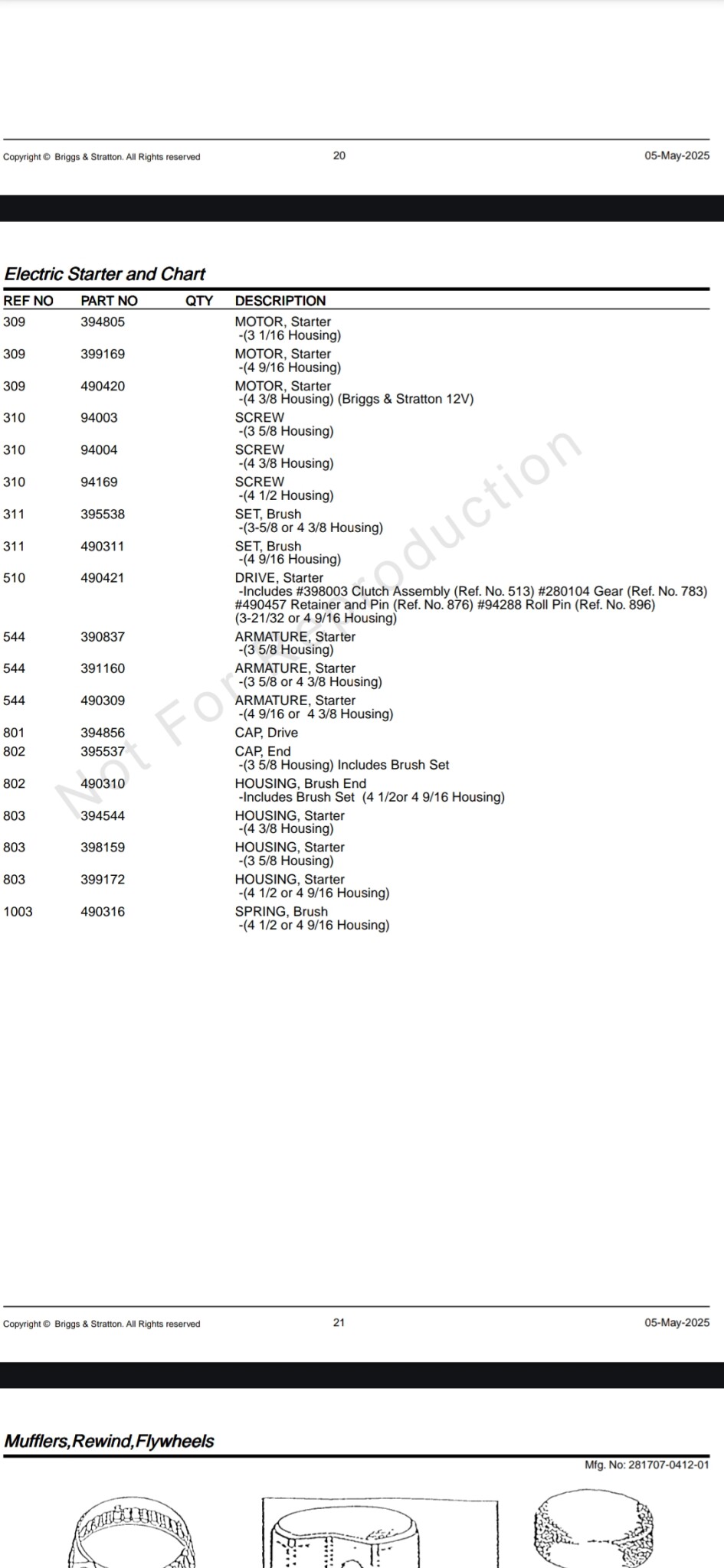 Bild 1:Startmotorn har ref 309 i listan (309 verkar vara den kompletta delen)