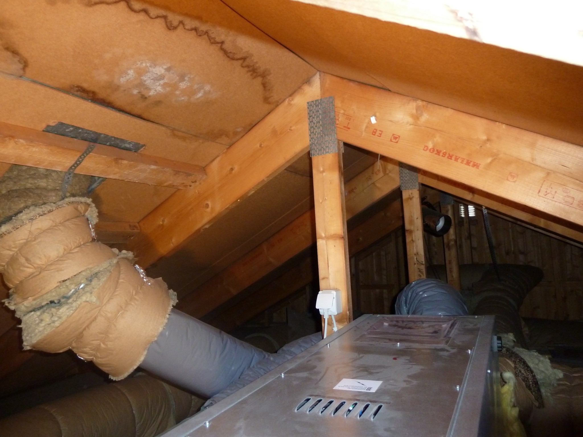 Var uppe på vinden nyss för att kolla till filtrerna till Frånluftsvärmeväxlaren och såg en vit påväx på yttertaket. Huset är byggt i slutet på 70-talet och har bord och ingen råspont. Det är en ventilerad kallvind. Det finns bara påväxt just vid ventaggregatet på några ställen ser det ut så som det gör runt påväxten, en vattenring. Någon som vet vad det är och vad man ska göra åt det? Är det något som hemförsäkring täcker? Det har aldrg bytts tak på huset så det börjar bli dags men hade tänkt vänta några år. Men man vill ju få bort det, eller iallafall inte få mer av det.