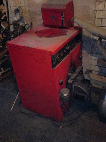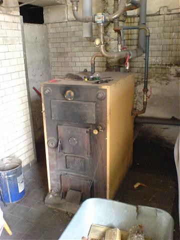 Huset har varit Mejeri en gång i tiden, därav den stora skorstenen. Syns fortfarande spår i golvet efter den forna pannan på ca 3x4 meter, och nu står där en liten 25kW vedpanna... känns liiiiiite litet...