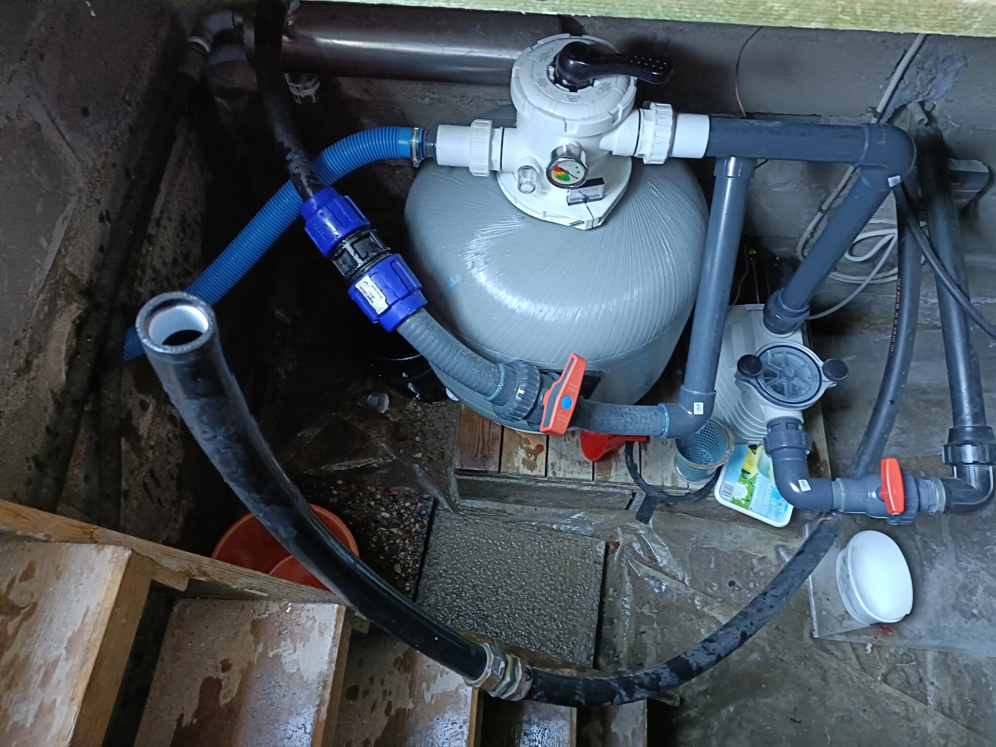 Jag har en pool med pump, filter, och värmeväxlare i den ordningen. Dessvärre lossnade slangen som går från värmeväxlaren och ut i poolen. Detta är en PEM-slang med någon koppling som ser rätt gammal och sketen ut. Har träpluggat igen utblåset i poolen så att det inte läcker alltför mycket när slangen förs under poolens vattennivå.