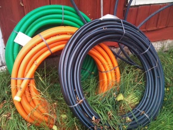 2st kabelskyddsrör 50m/st med slät insida och draglina, färger orange samt grön.