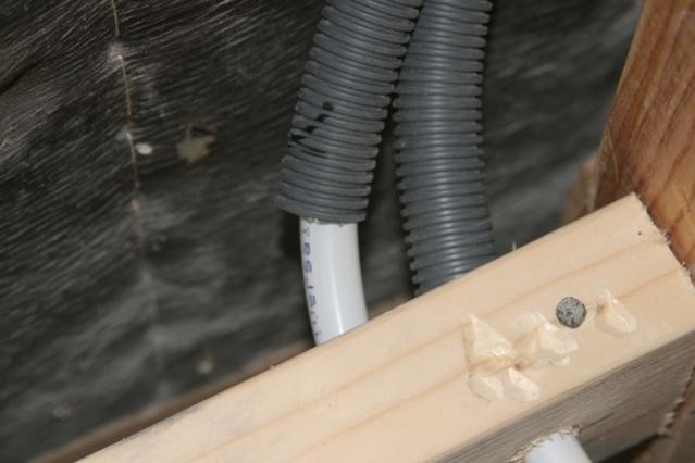 Det är väl så att detta är dålig rördragning. Vet inte om dte egentligen strider mot BKR reglerna. Du har fått en PEX installation, inte en Rör i Rör installation. Efterssom ytterröret är avslutat för tidigt så fyller det ingen funktion.