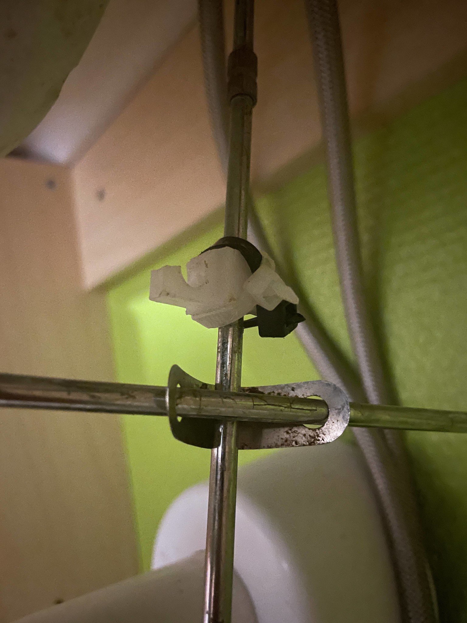 Pinnen bakom blandaren (den har den vita plastkroken på ena bilden) ska väl på nåt sätt fästas i den horisontella pinnen gissar jag. Trodde jag skulle kunna få in den innanför den böjda lilla metallbiten. Men det kanske inte är rätt tänkt. Önskar lite support!