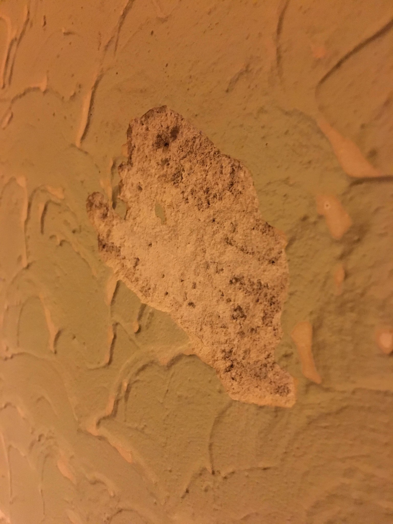 Men så började jag peta lite på det som var kvar. Det föll ner rätt lätt. Problemet är att också den underliggande putsen följer med på sina ställen. Men det går att få bort.