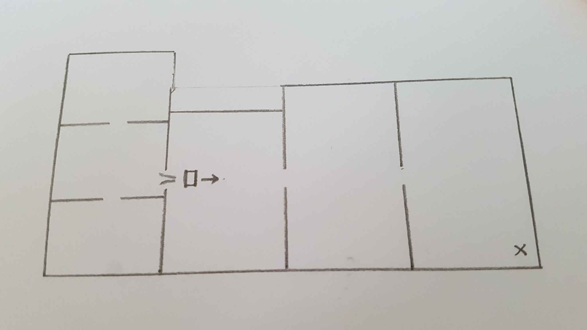 Bifogar en bild (inte skalenlig). Jag har markerat vart avfuktare står i nuläget. X:et är passagen ner till grunden.