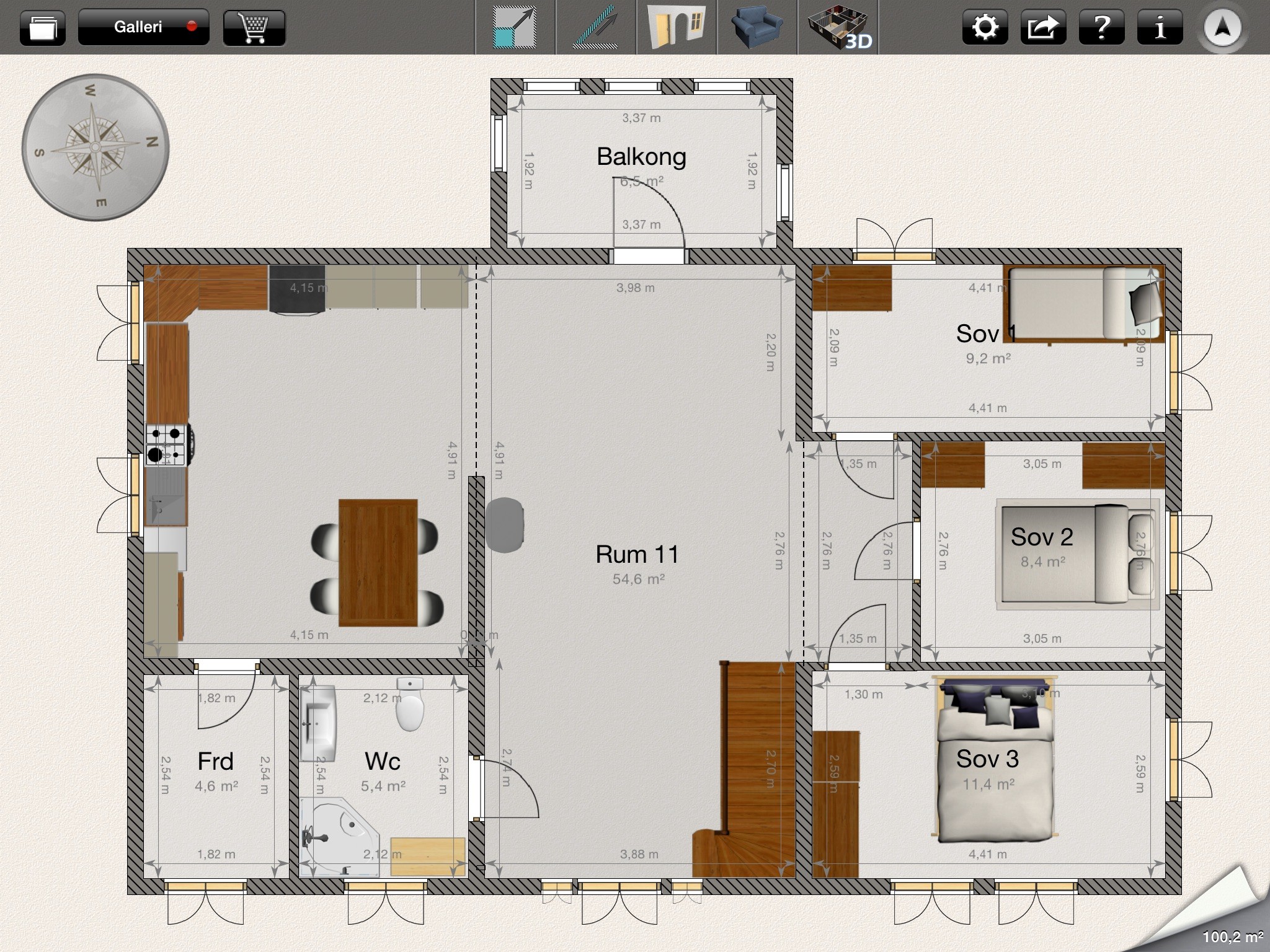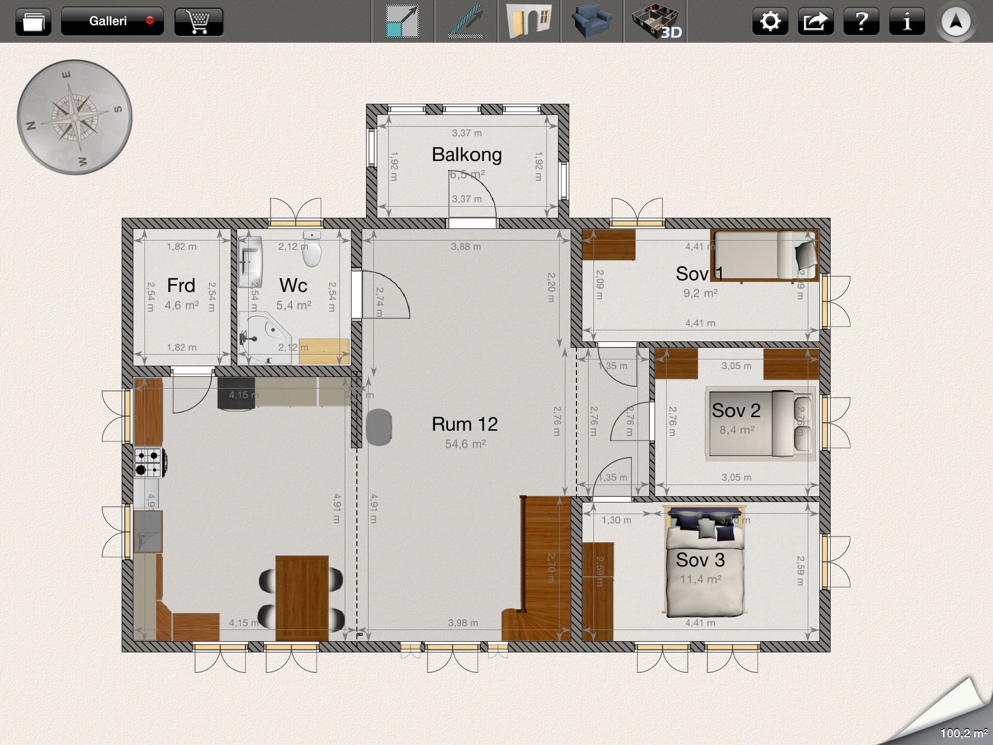 Den övriga planlösingen med tre sovrum i Norrläge är spikat. Pga solen.