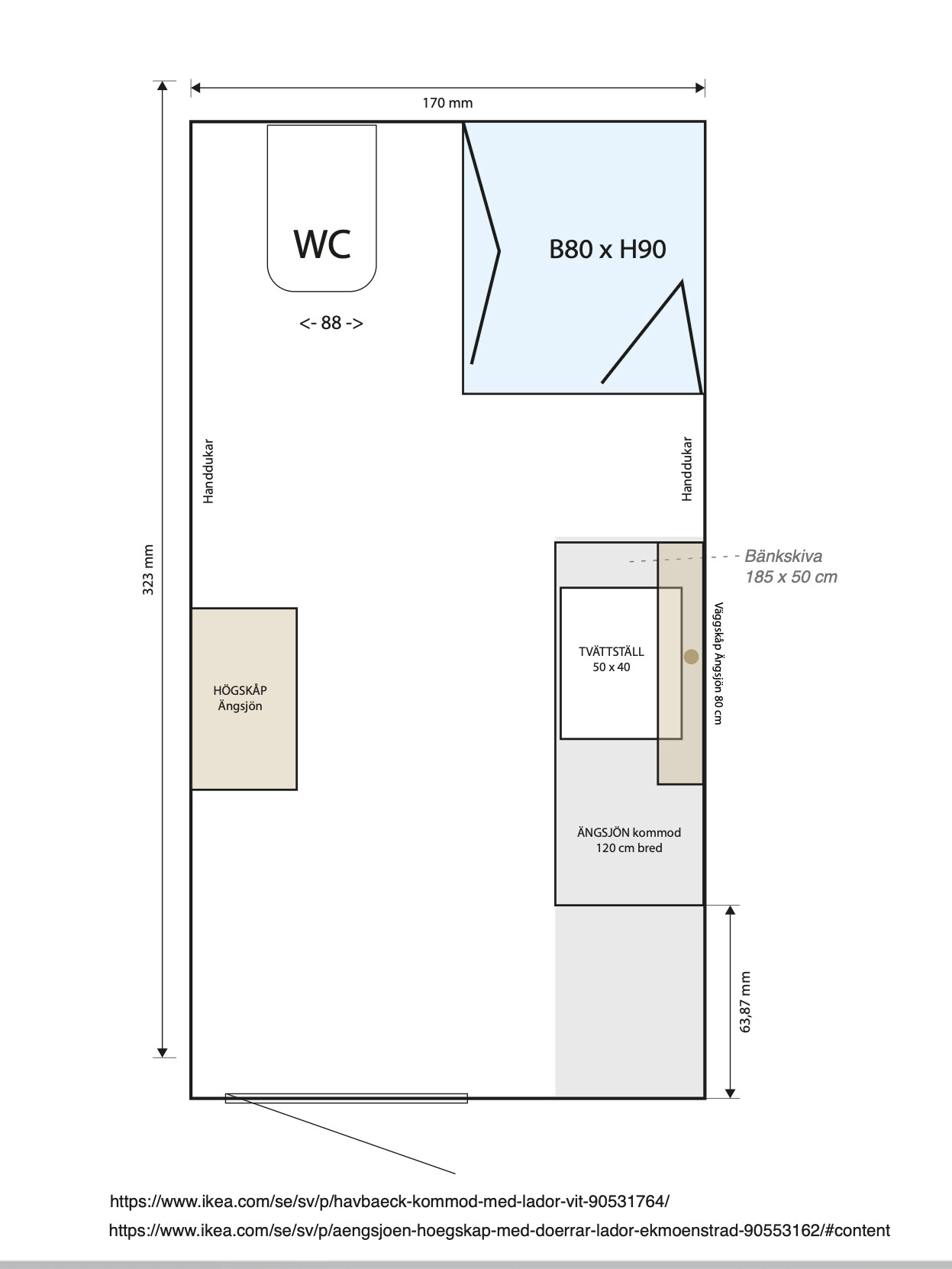 Avlopp är fixat under kommoden. De tog bort det gamla röret som ”stod upp” längs väggen då vi pratade om avlopp från tvättmaskin redan från början.Centano skrev: