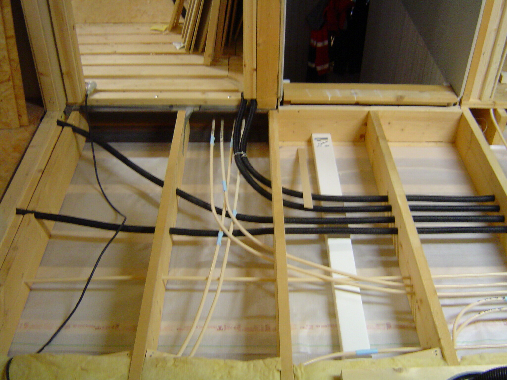 Blir nästan en omöjlighet att planera förläggningen så att alla slangar går i golvspånet till centralen. Då hela bjälklaget är öppet hade det varit enklast att dra varje rum för sig och sen skicka ner slangen i tomrör under golvspånet som går till centralen. Förlorar ju några meter värme på varje slinga men blir betydligt lättare att utföra. Är det en OK lösning eller hur brukar proffsen göra?